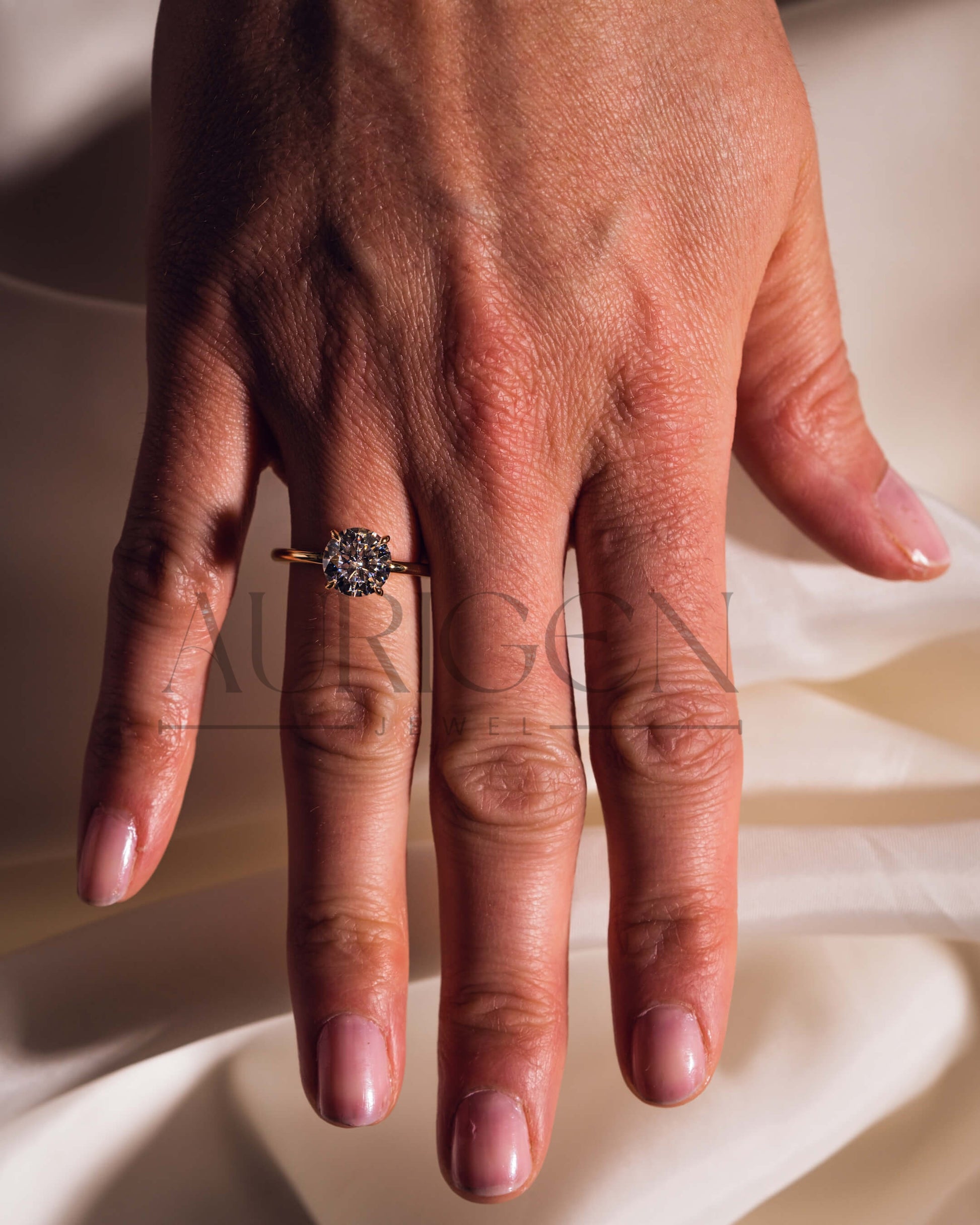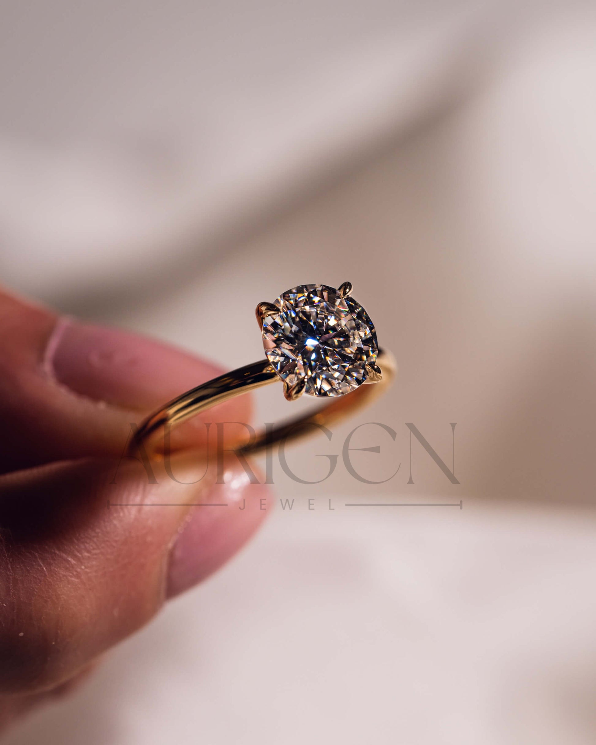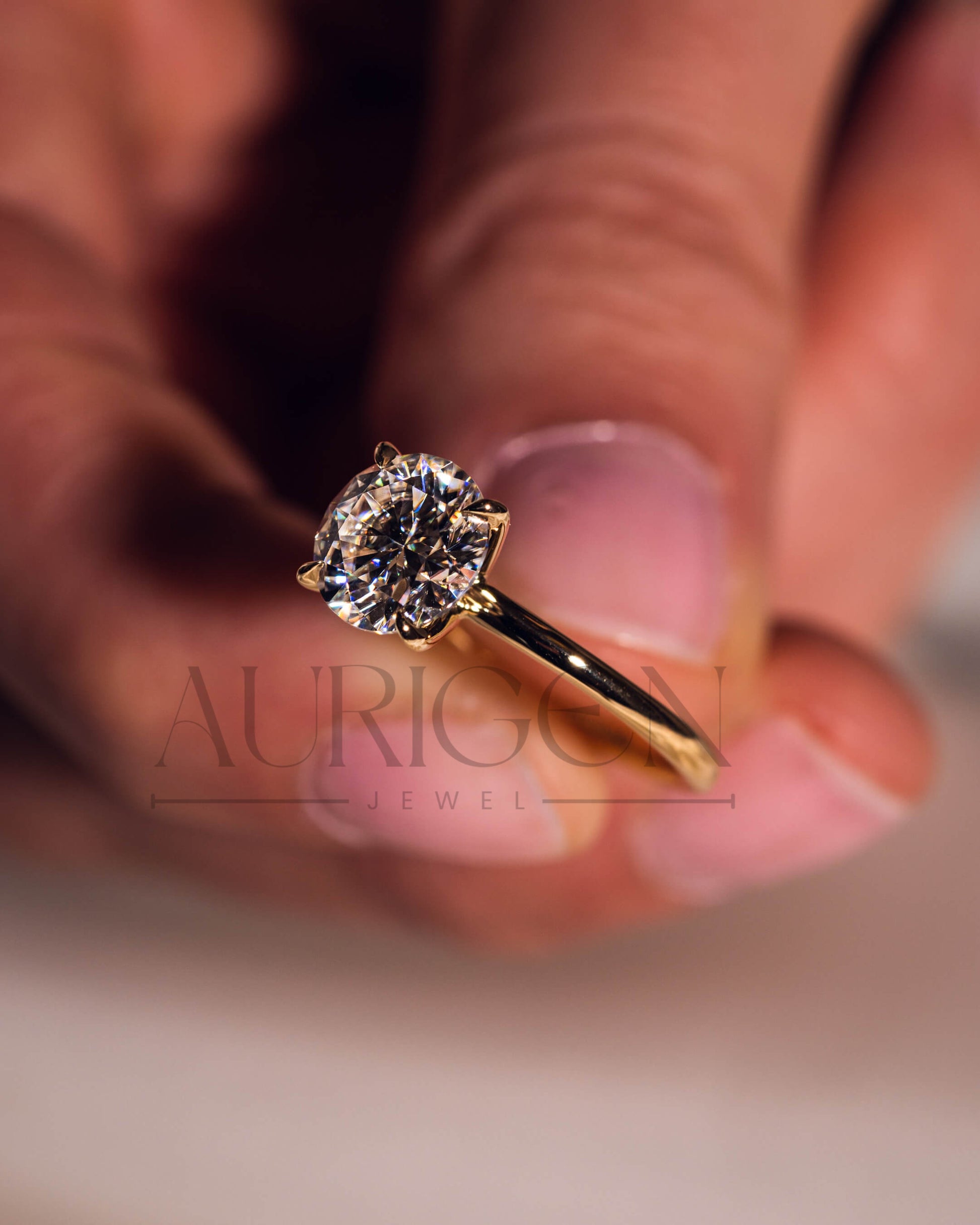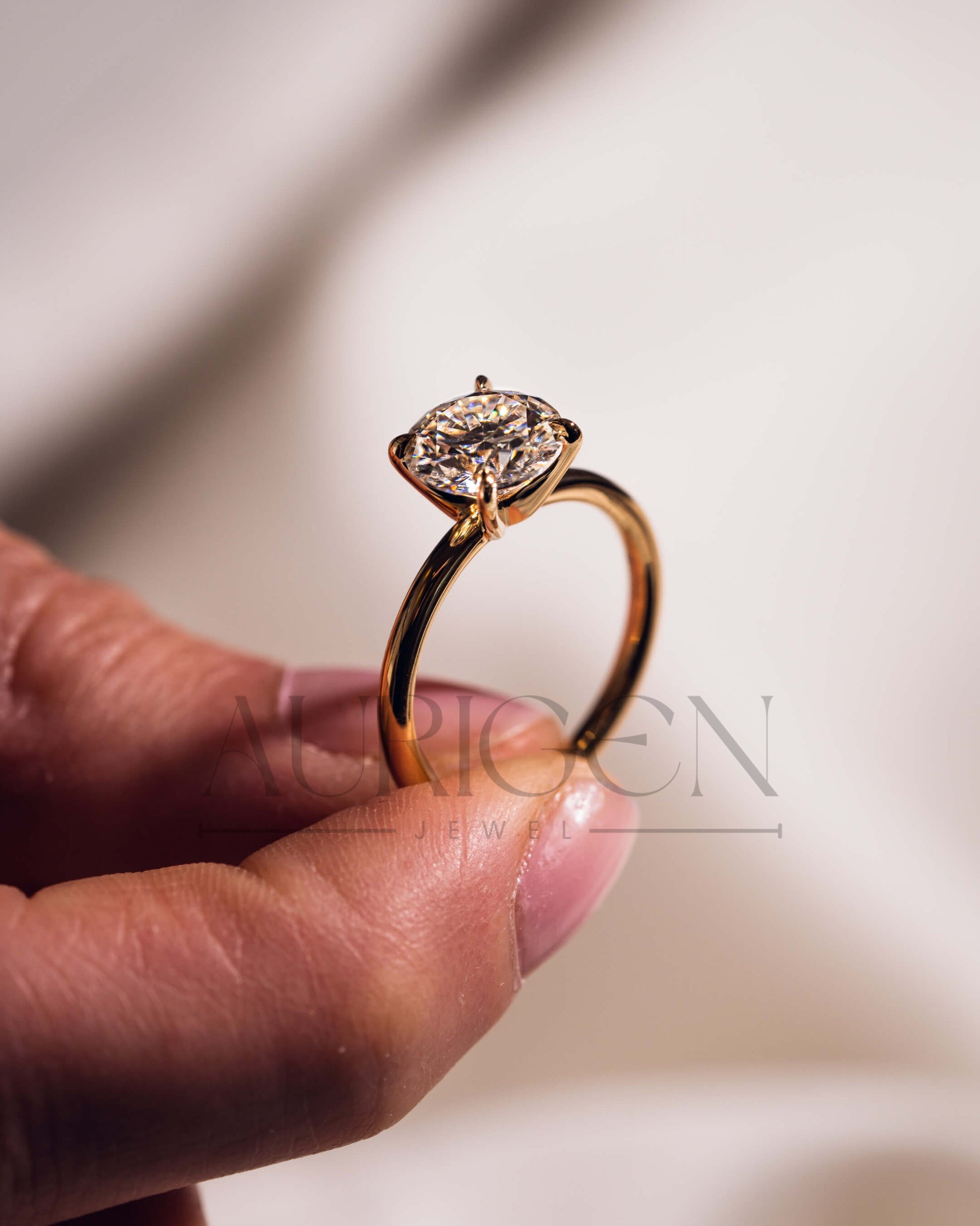 ✦ The Ring Shown in the Picture Holds a Beautiful Round Cut Diamond Ring.