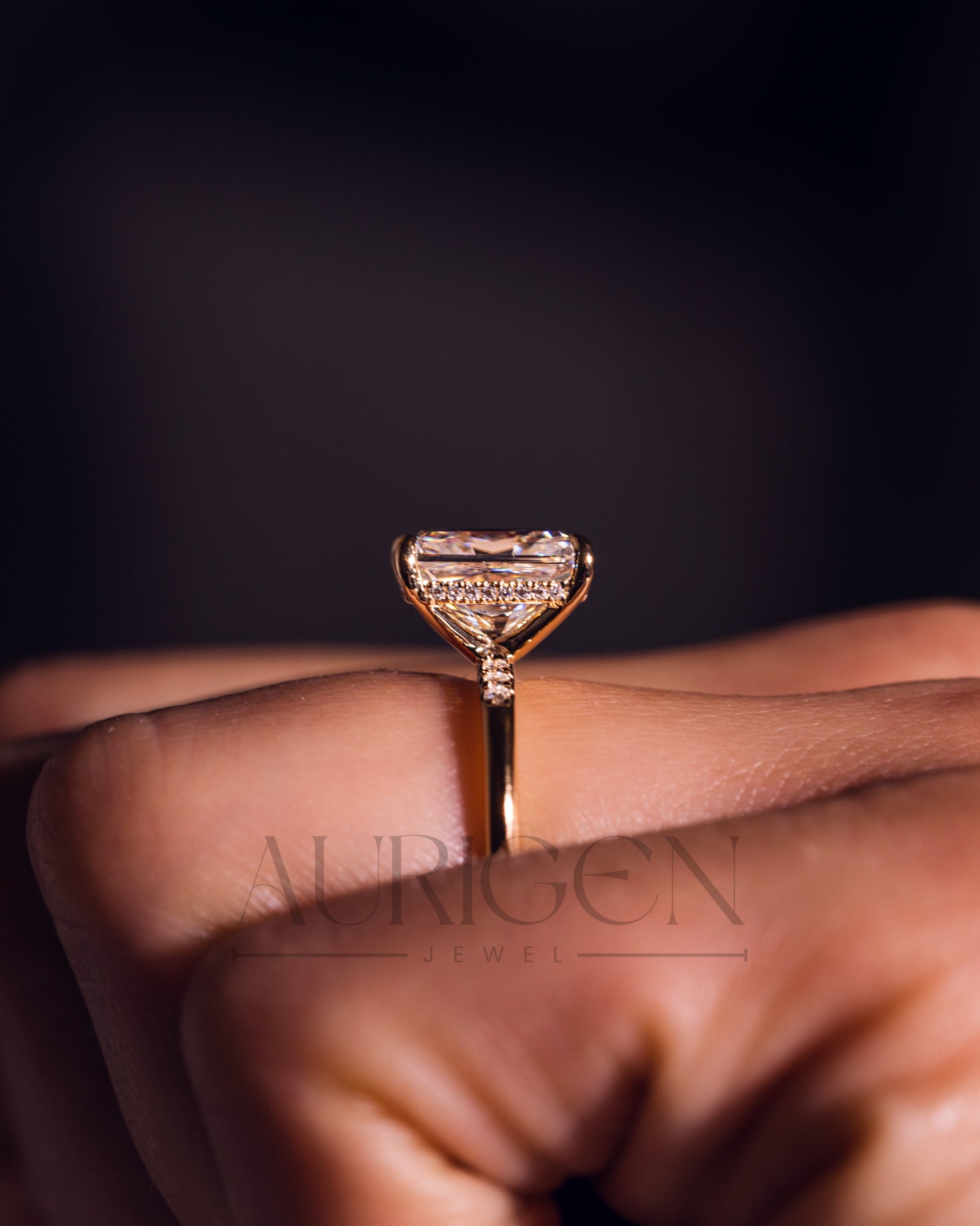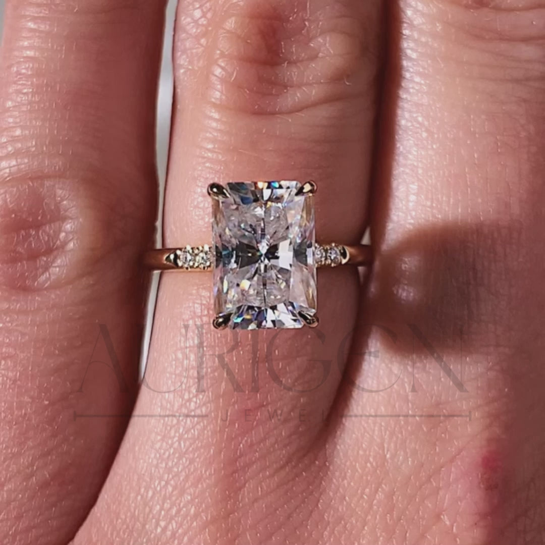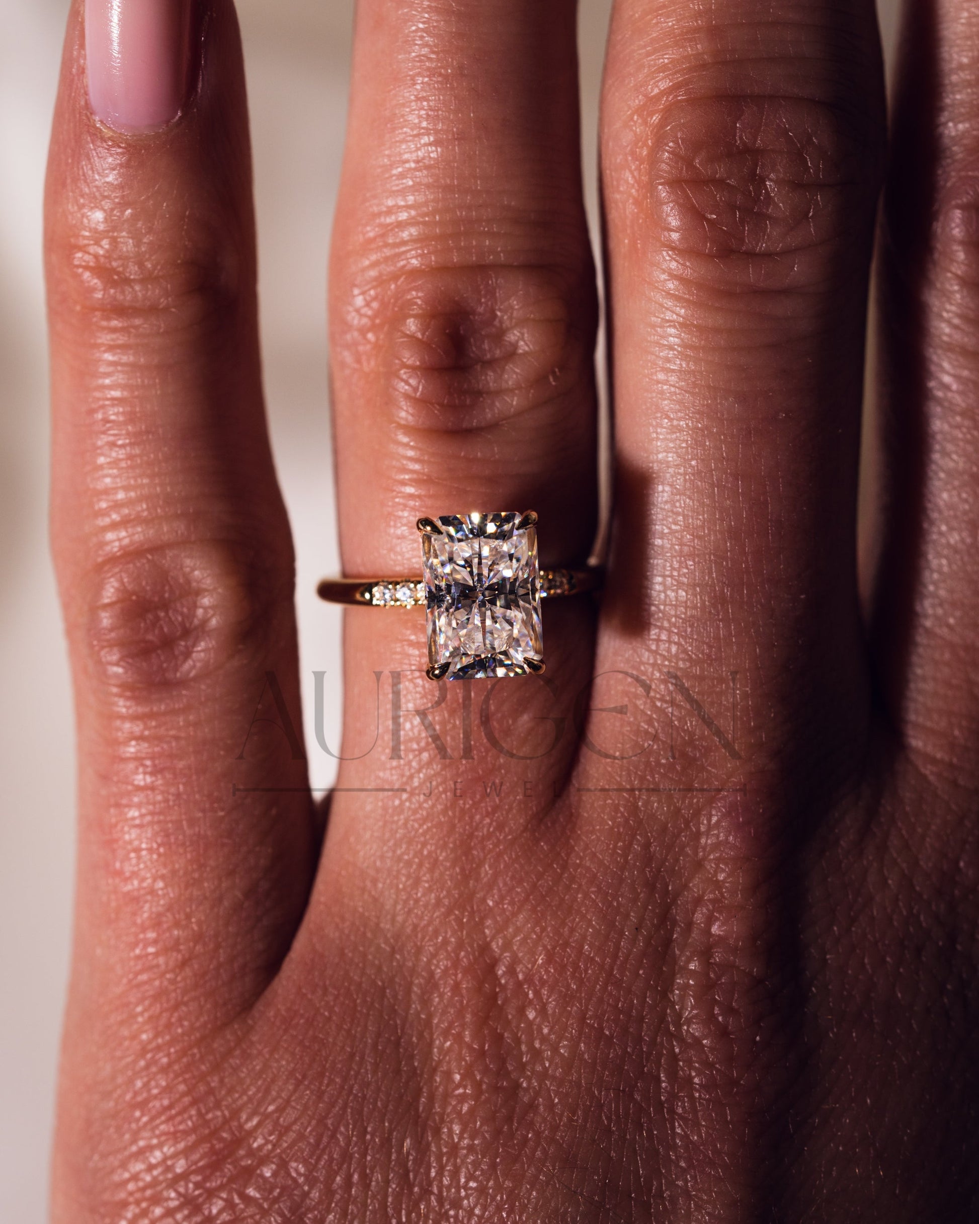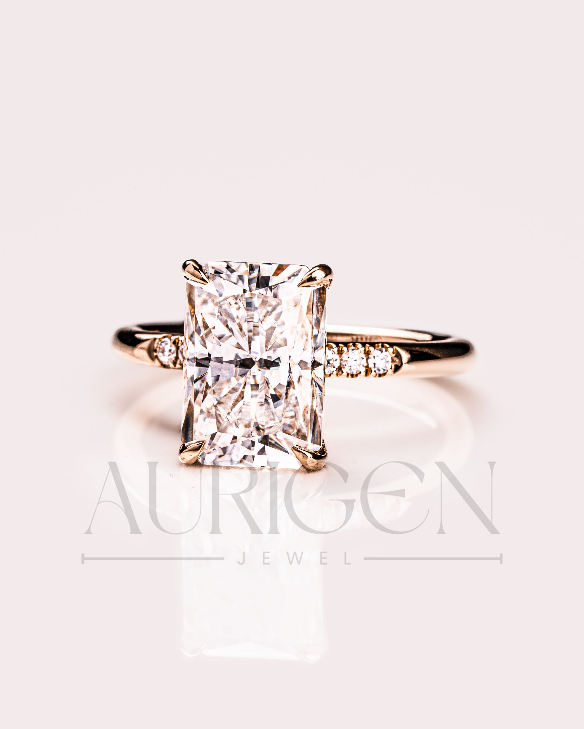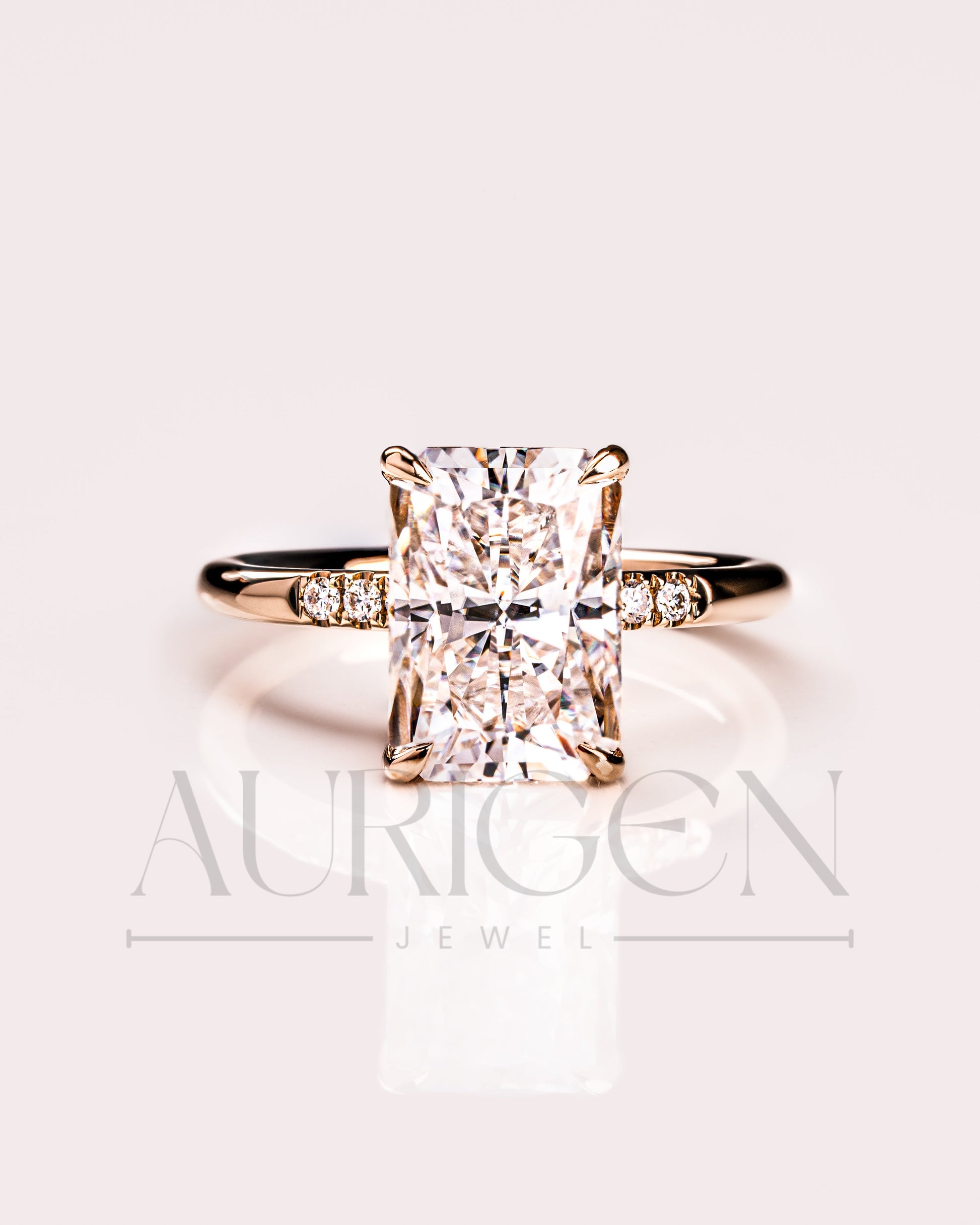 Sparkling 14K Solid Gold Radiant Cut Moissanite and Lab Grown Diamond Ring