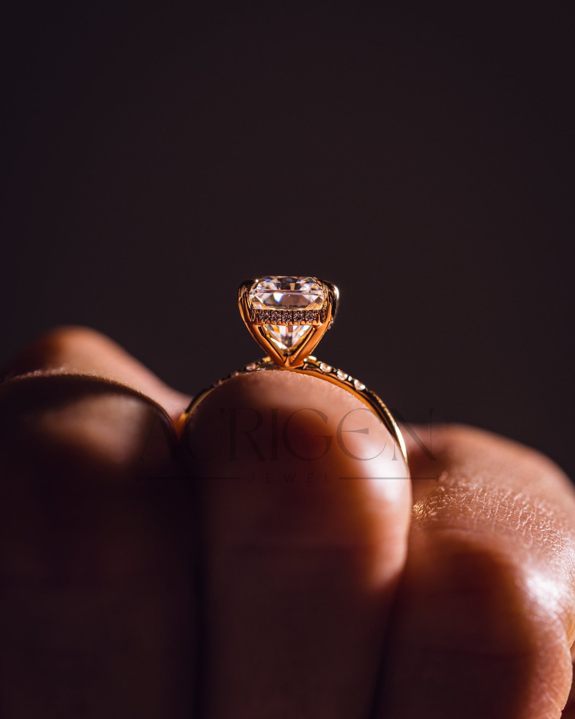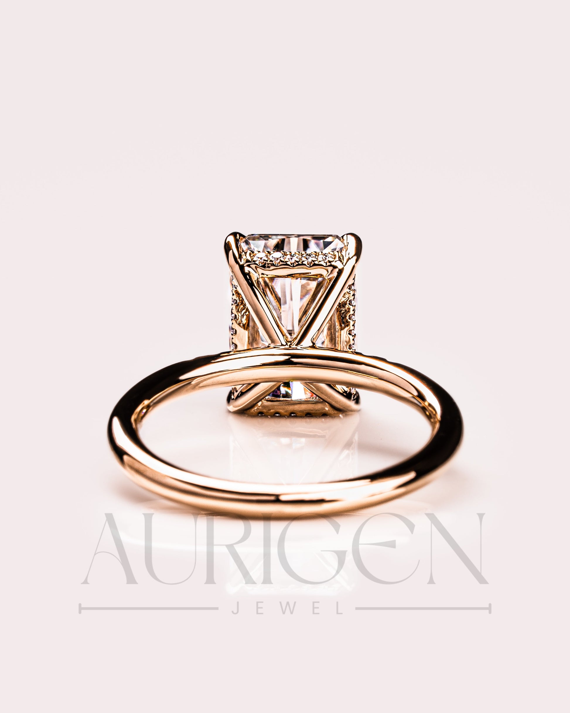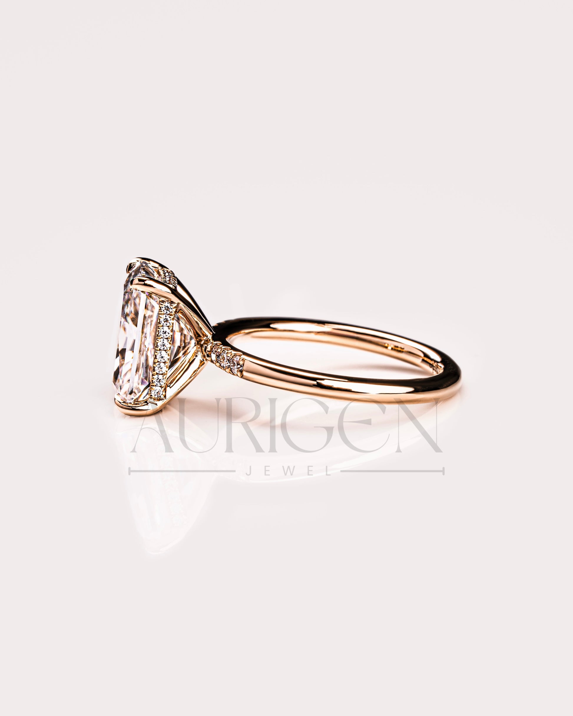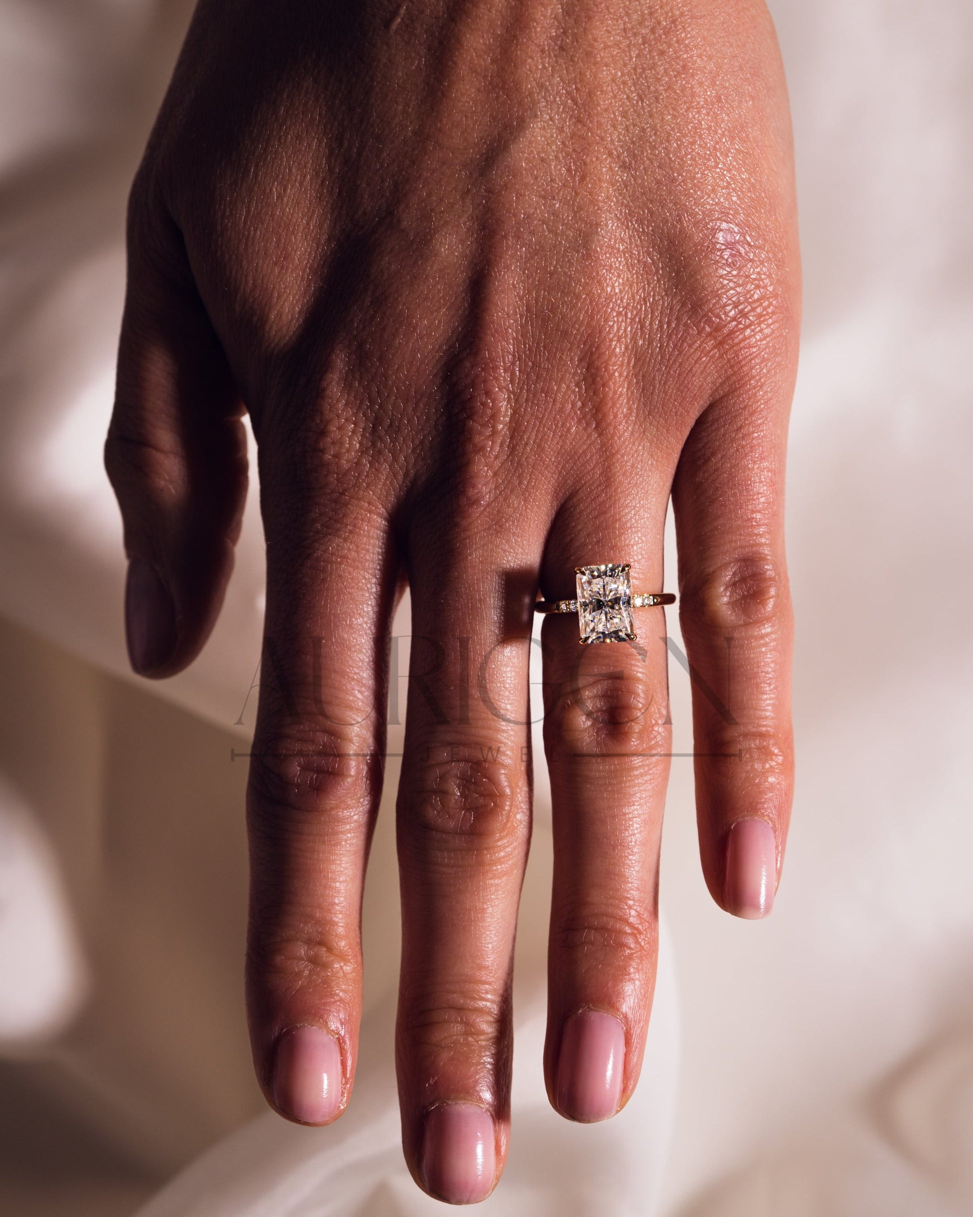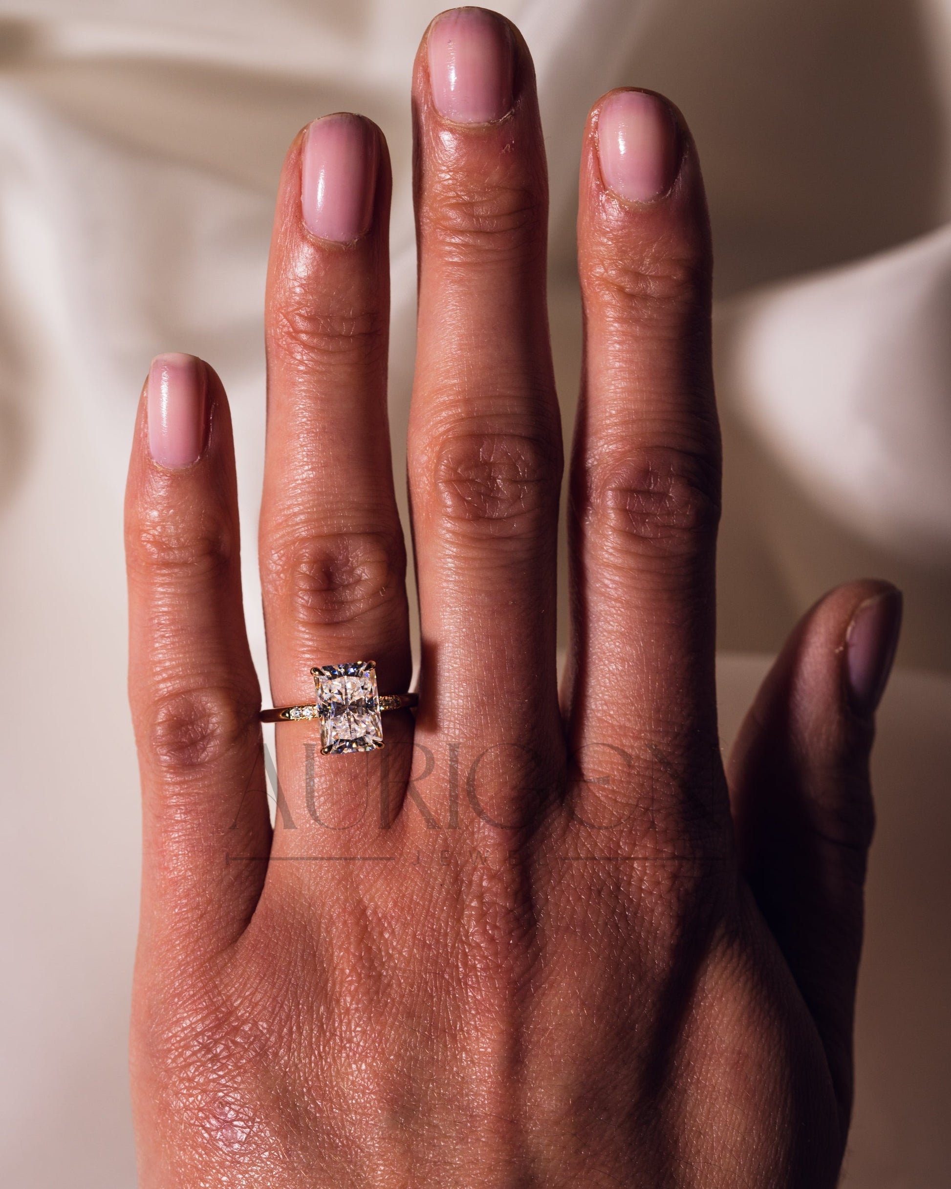 Sparkling 14K Solid Gold Radiant Cut Moissanite and Lab Grown Diamond Ring
