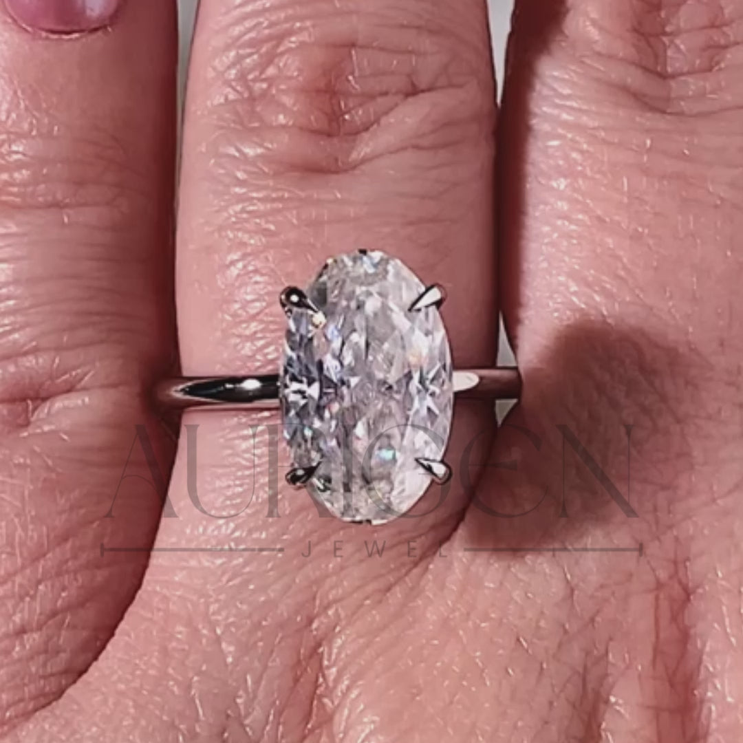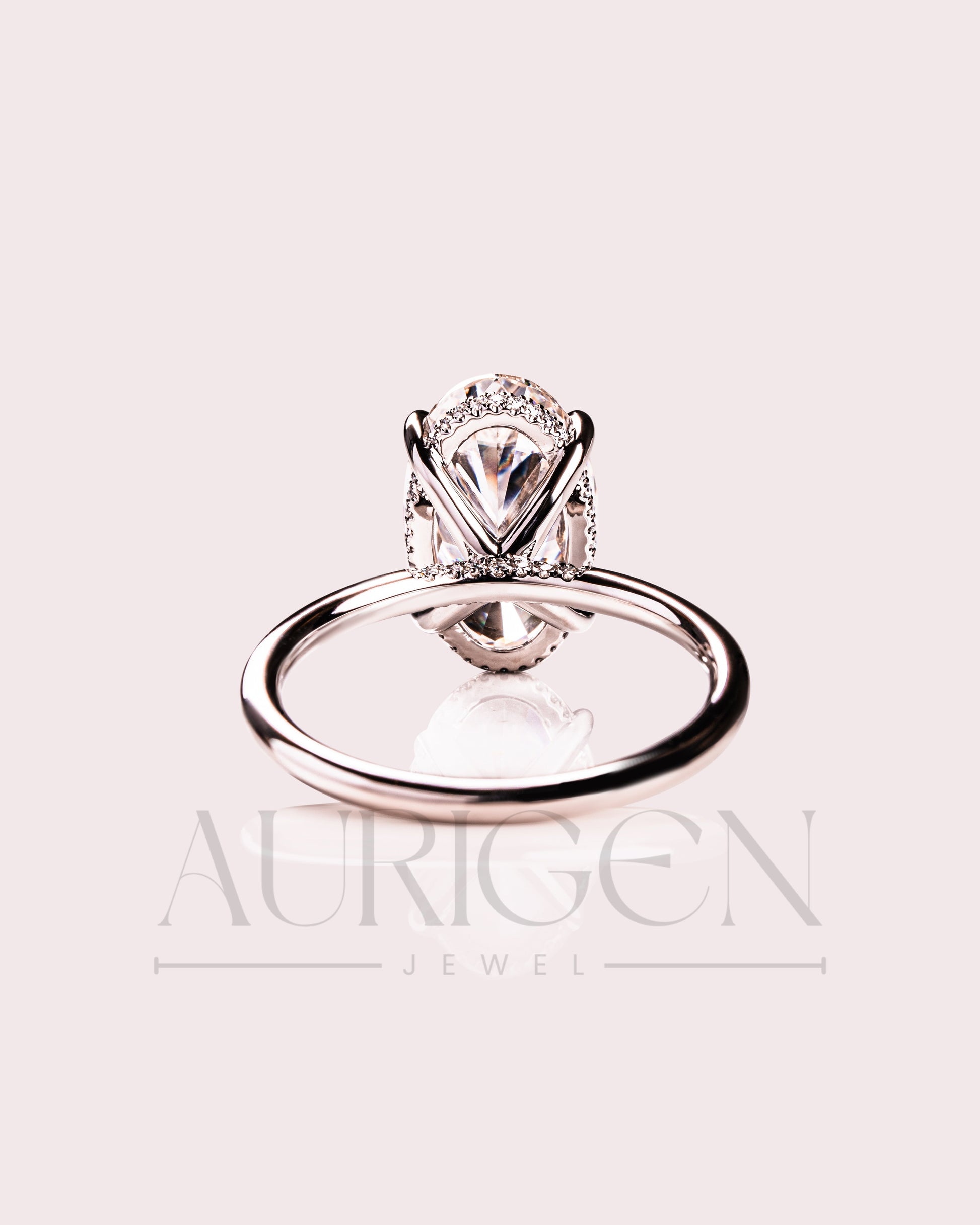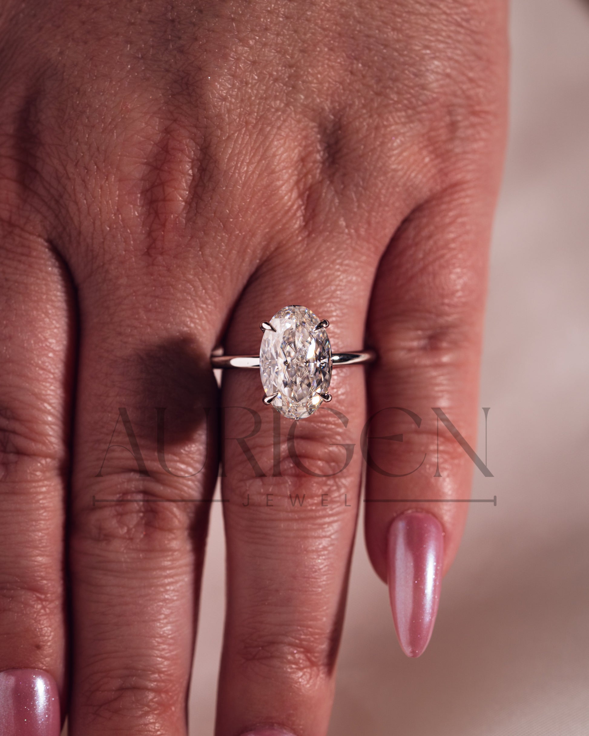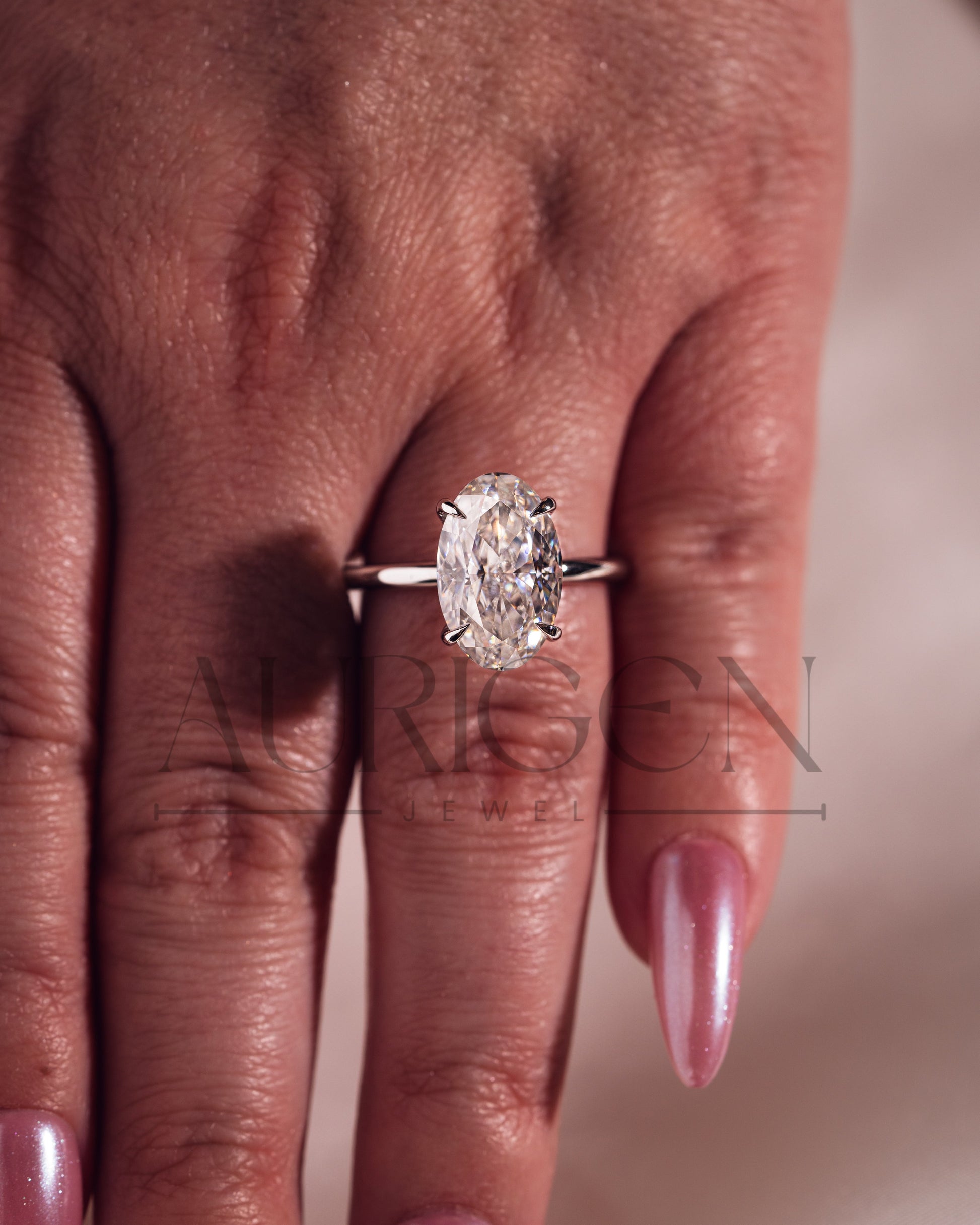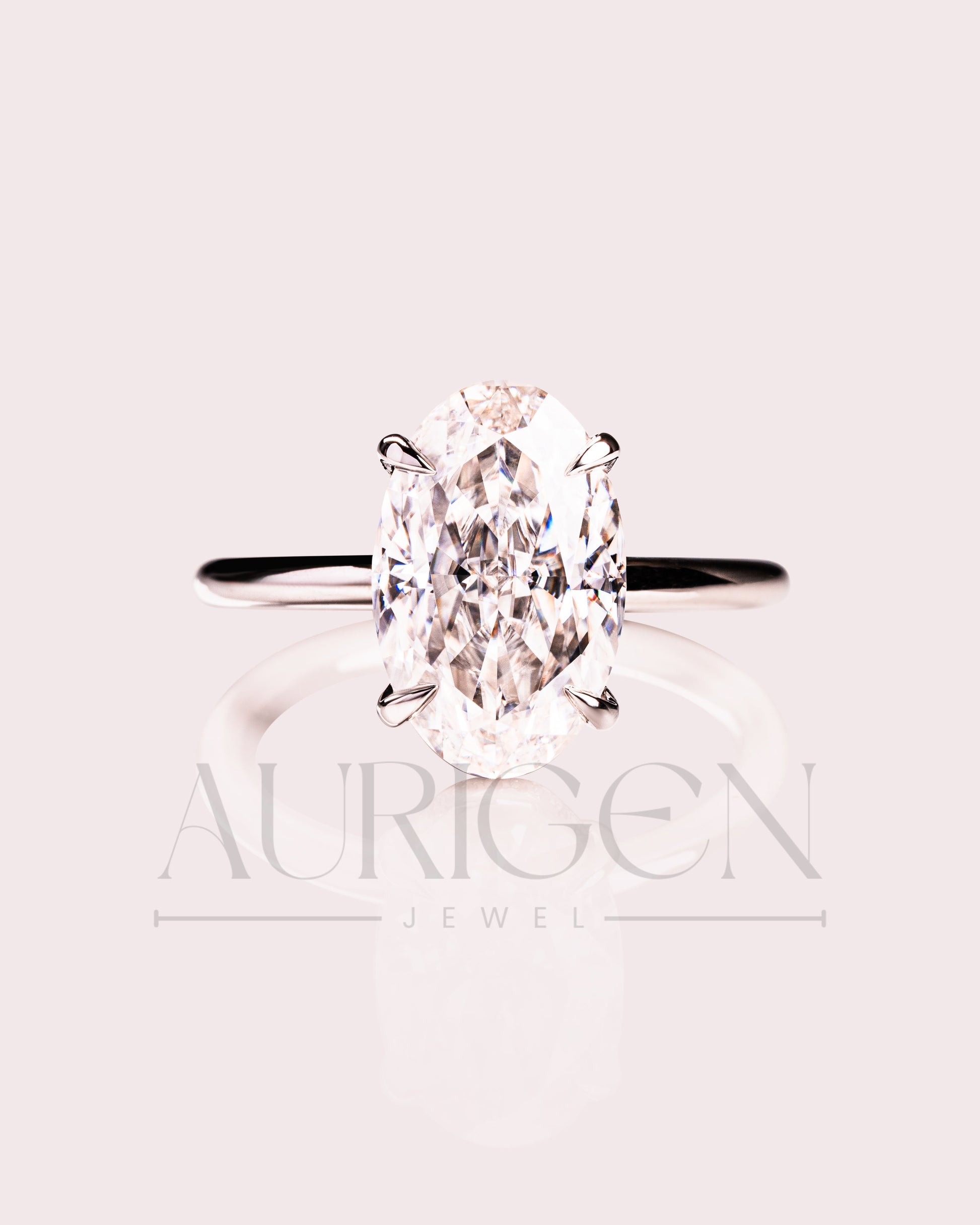 Sparkling Oval Cut Moissanite and Lab Grown Engagement Ring-14K Solid Gold