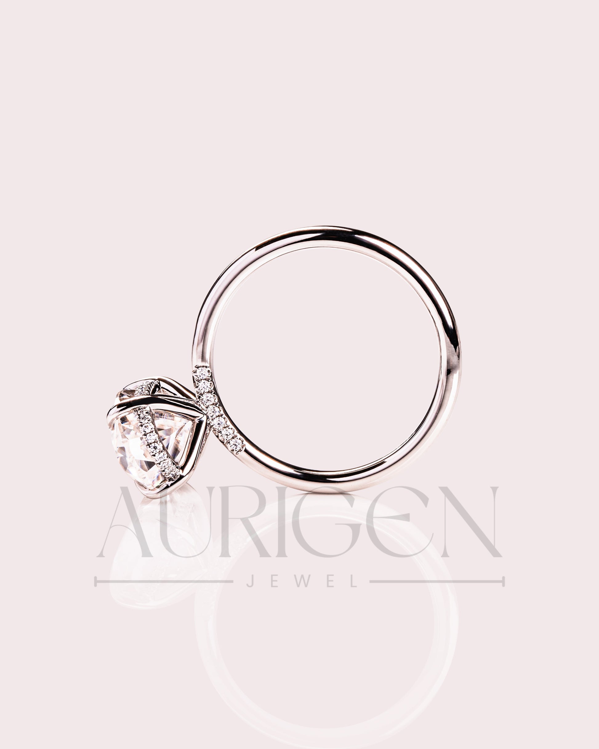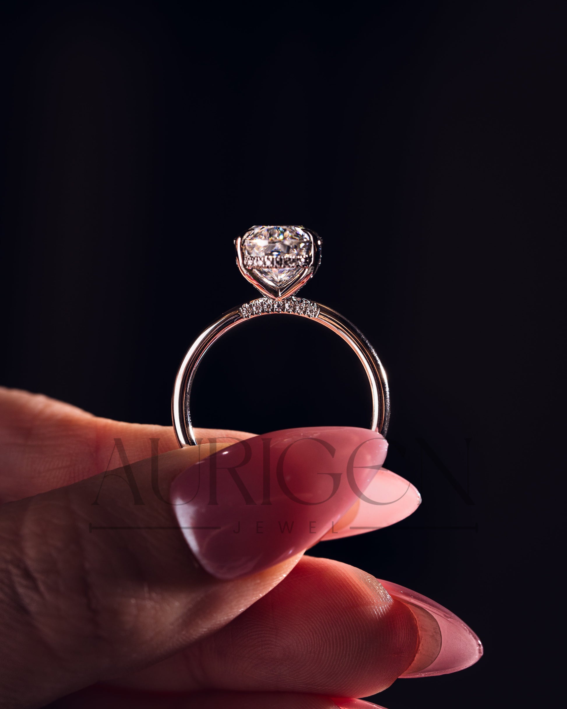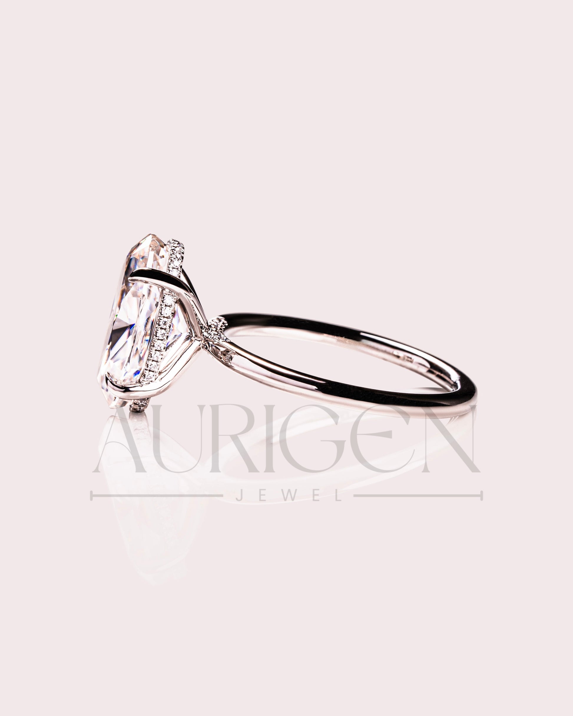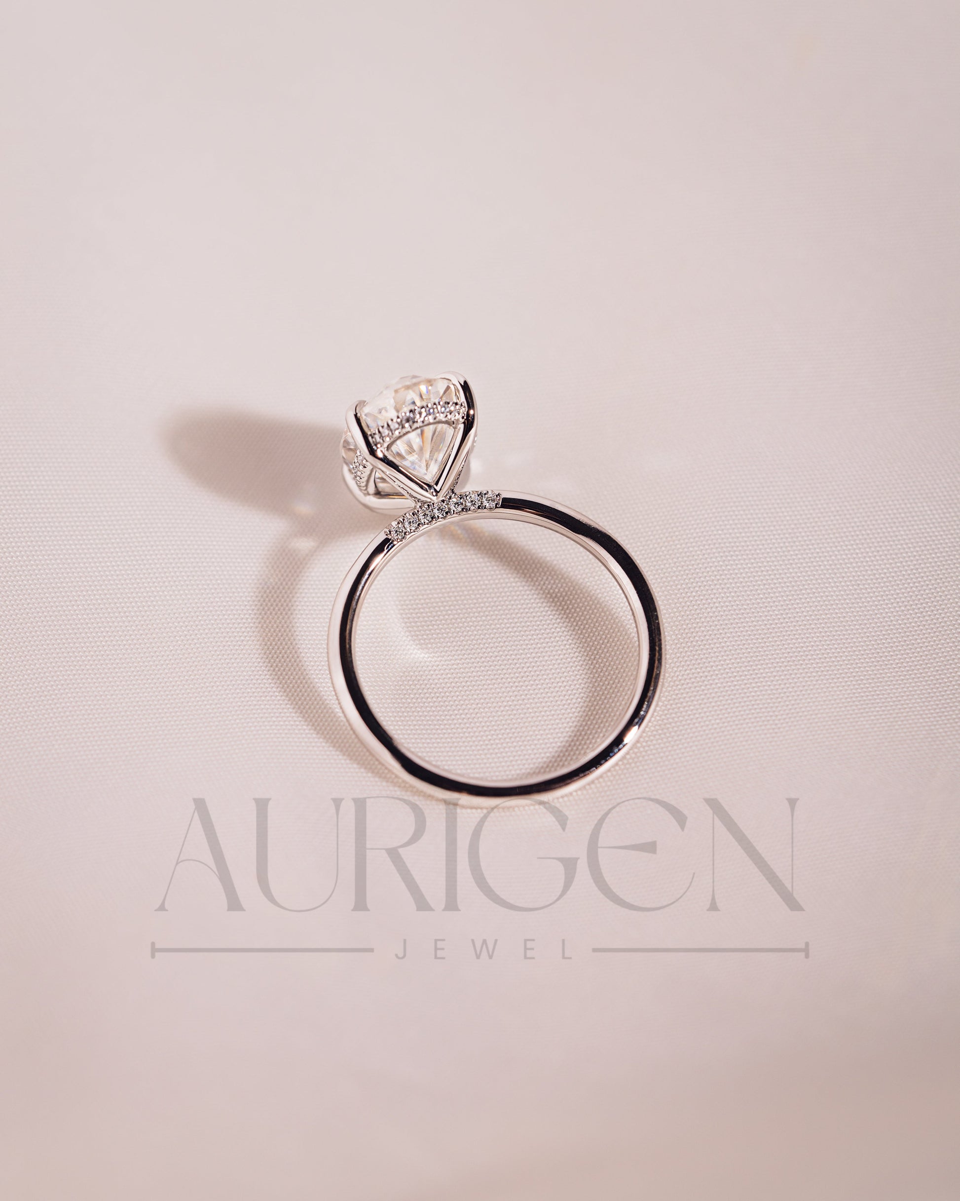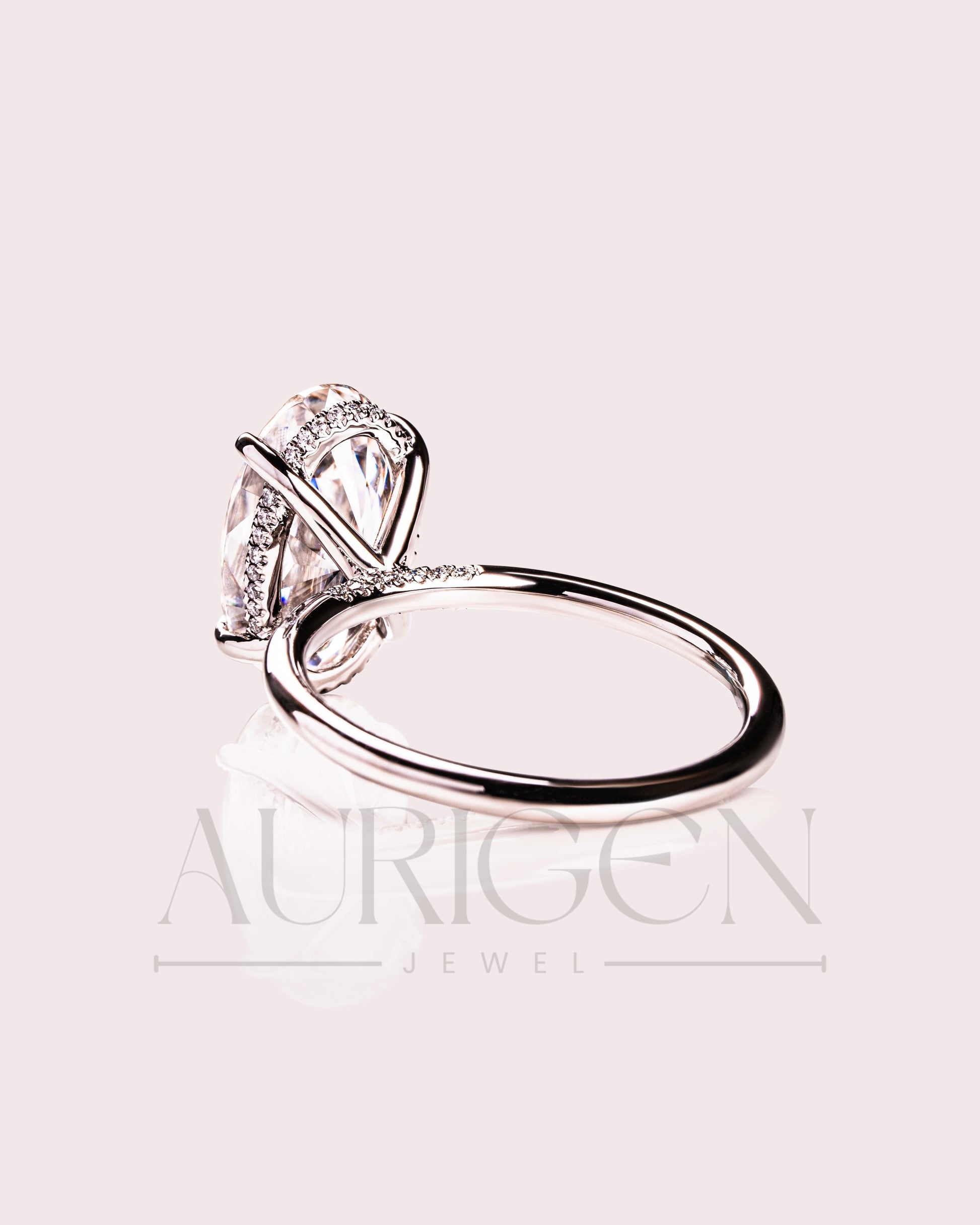 Sparkling Oval Cut Moissanite and Lab Grown Engagement Ring-14K Solid Gold