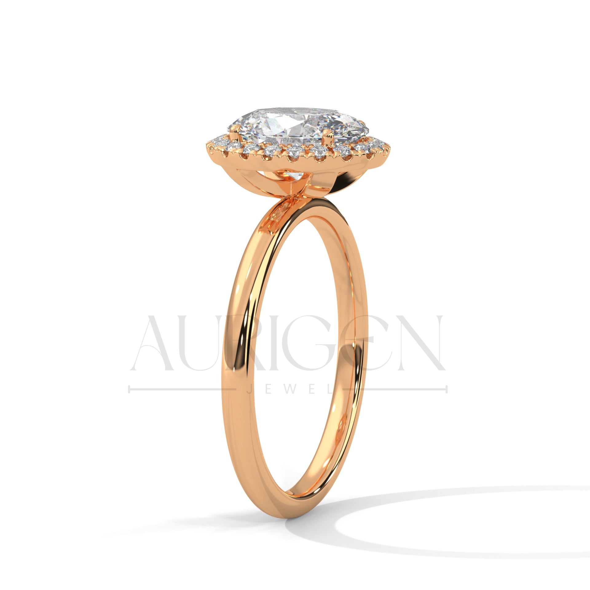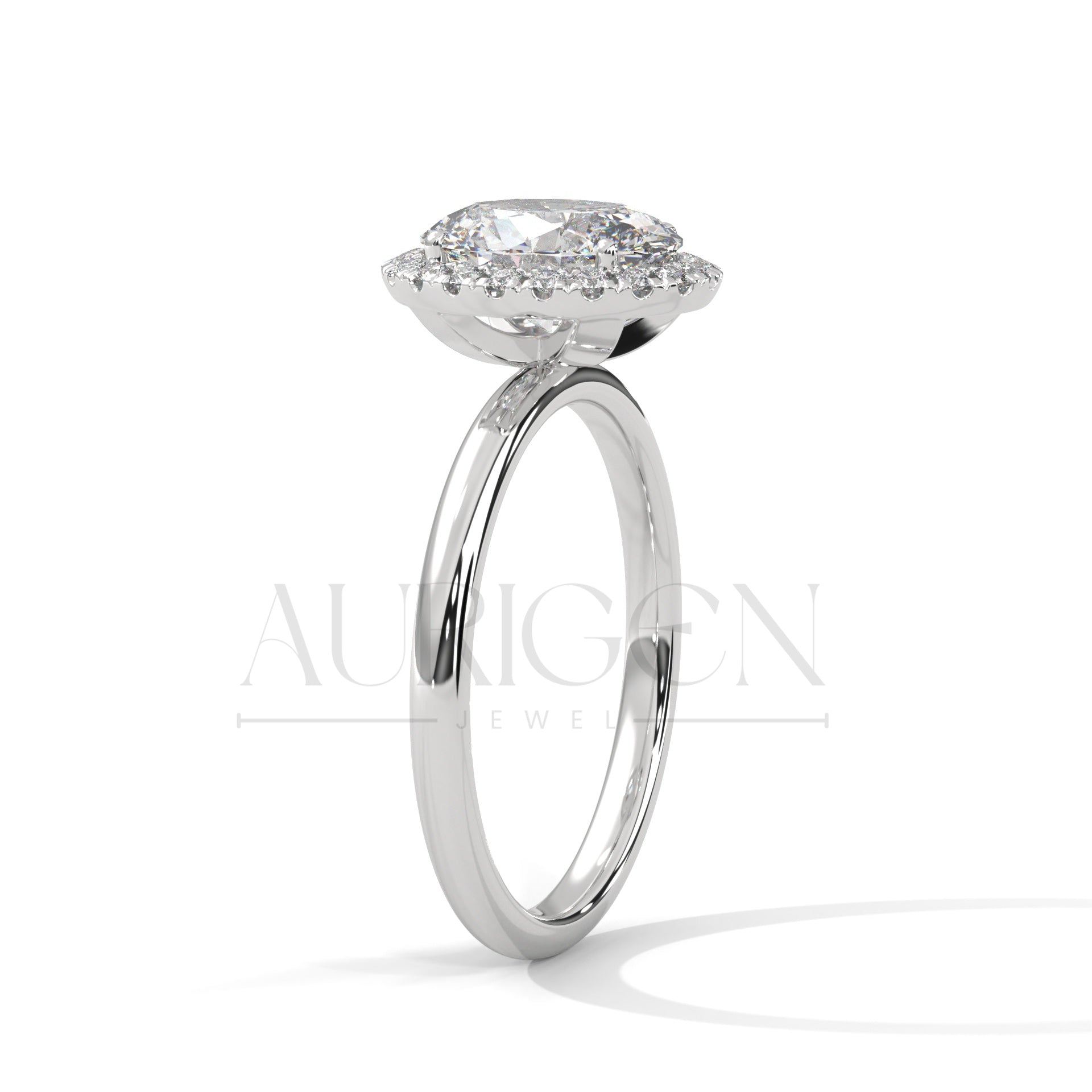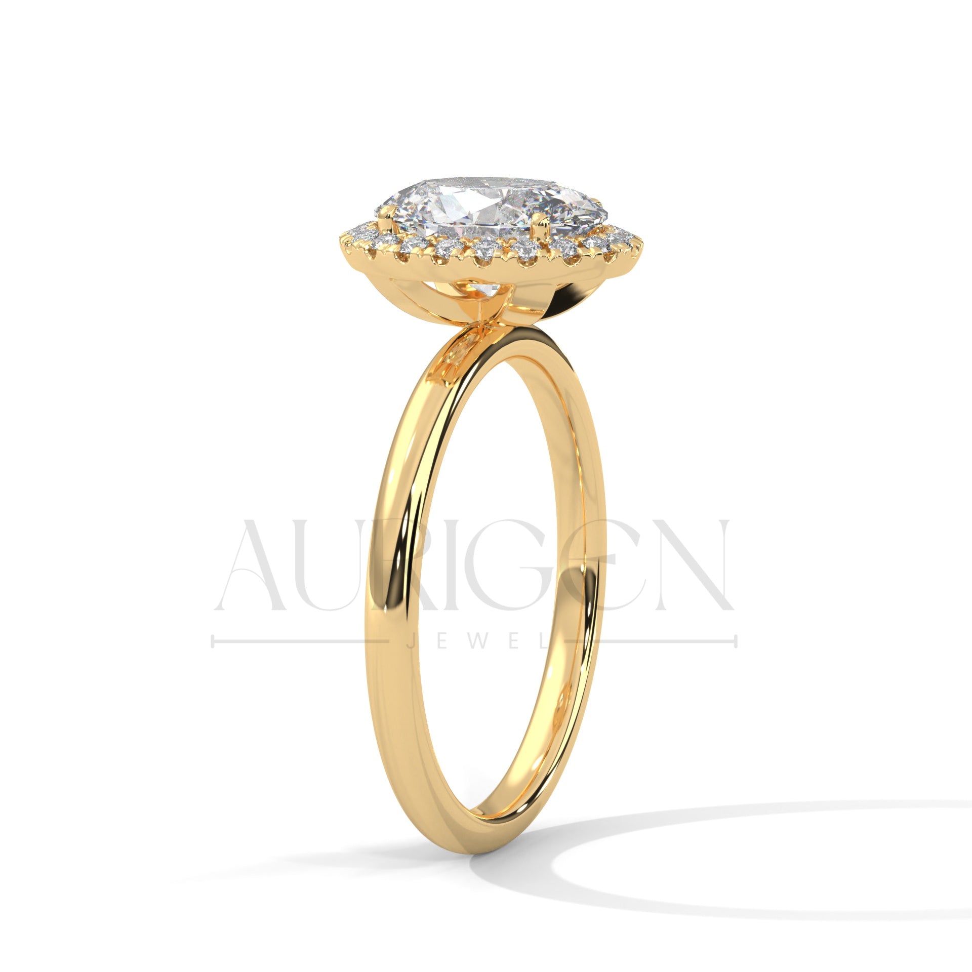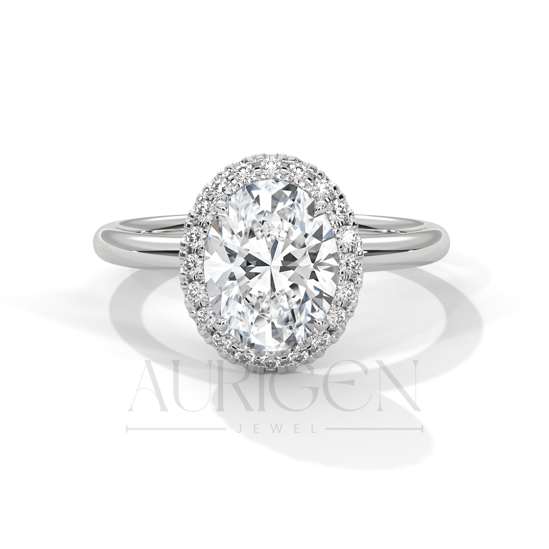 Stunning 2.0 CT Oval Cut Halo Diamond 14K Solid Gold Engagement Ring