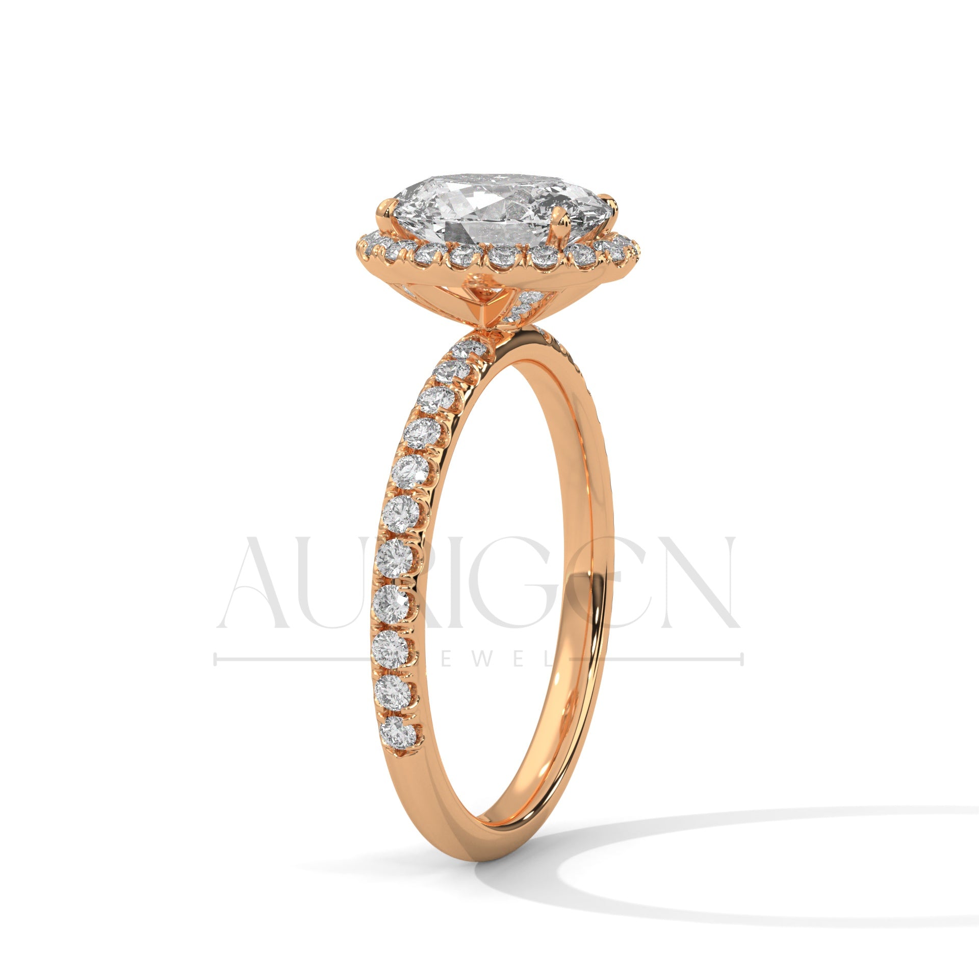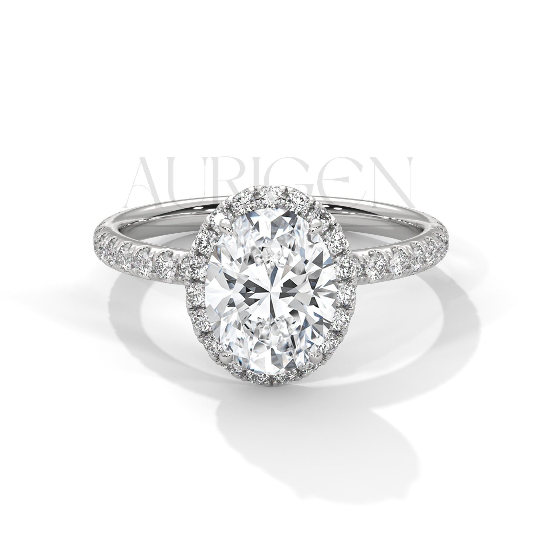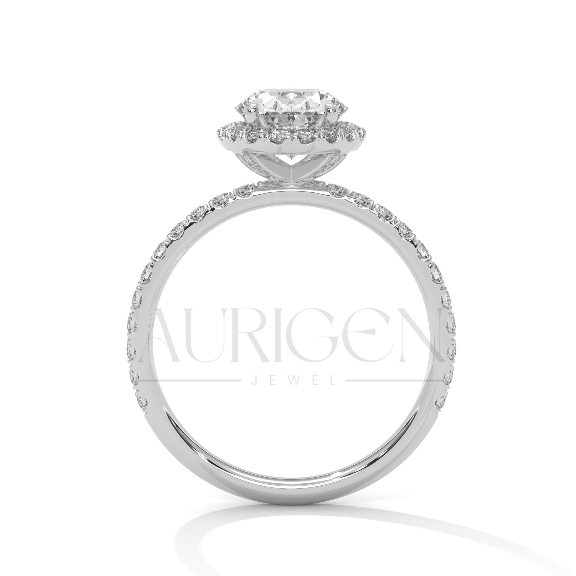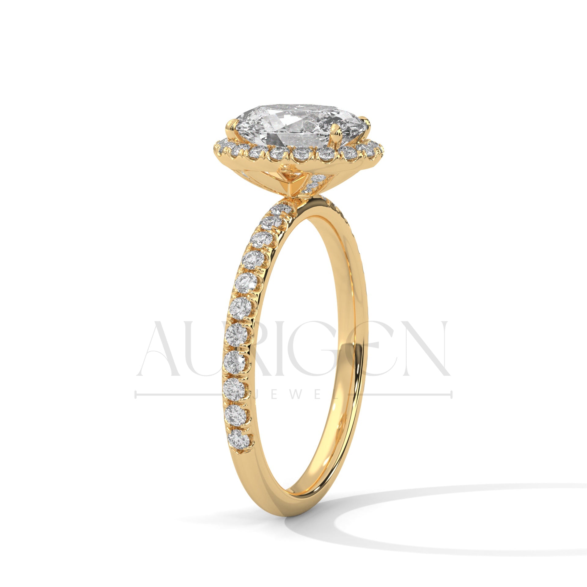 Timeless 18K Solid Gold Engagement Ring with Oval Cut Diamond and Halo Design