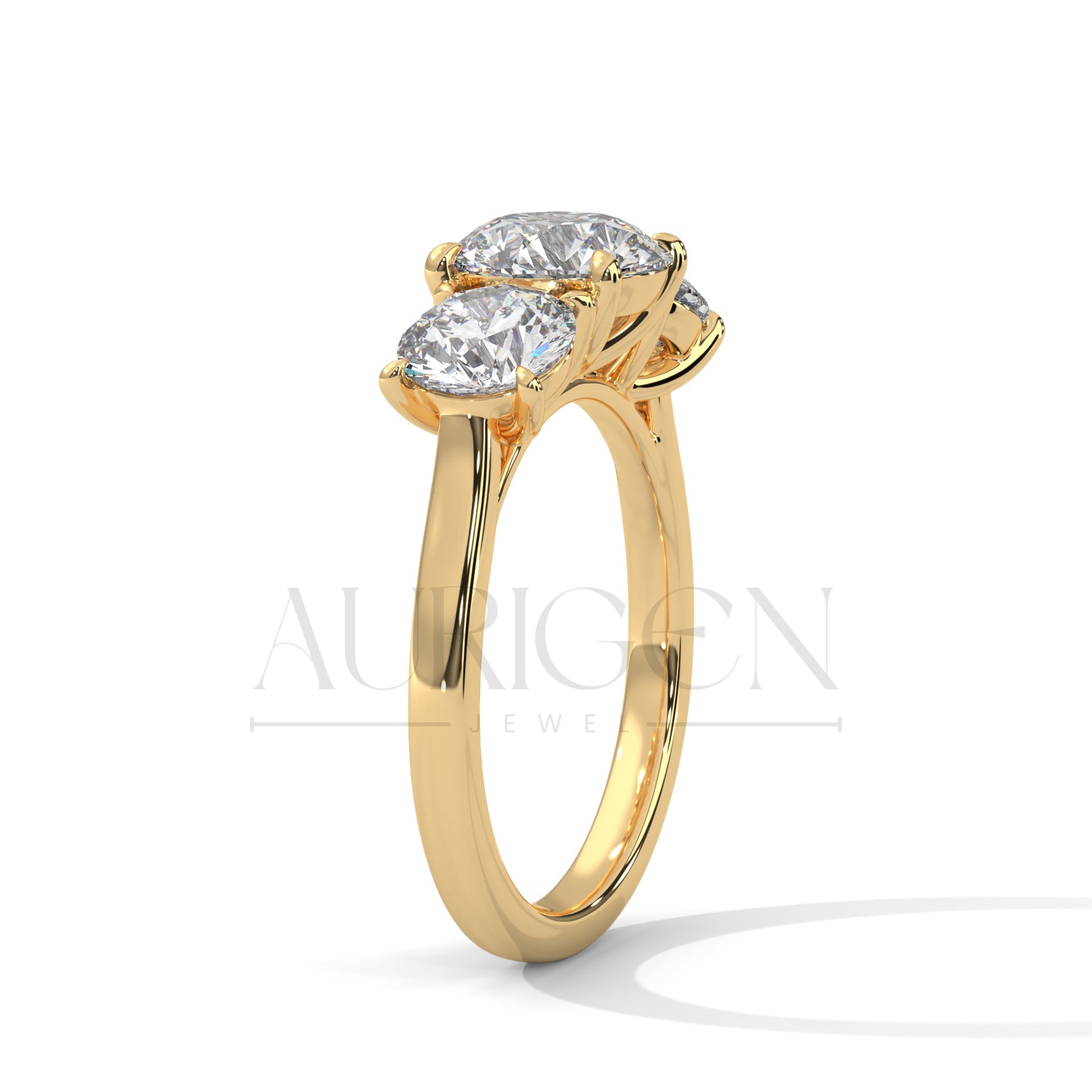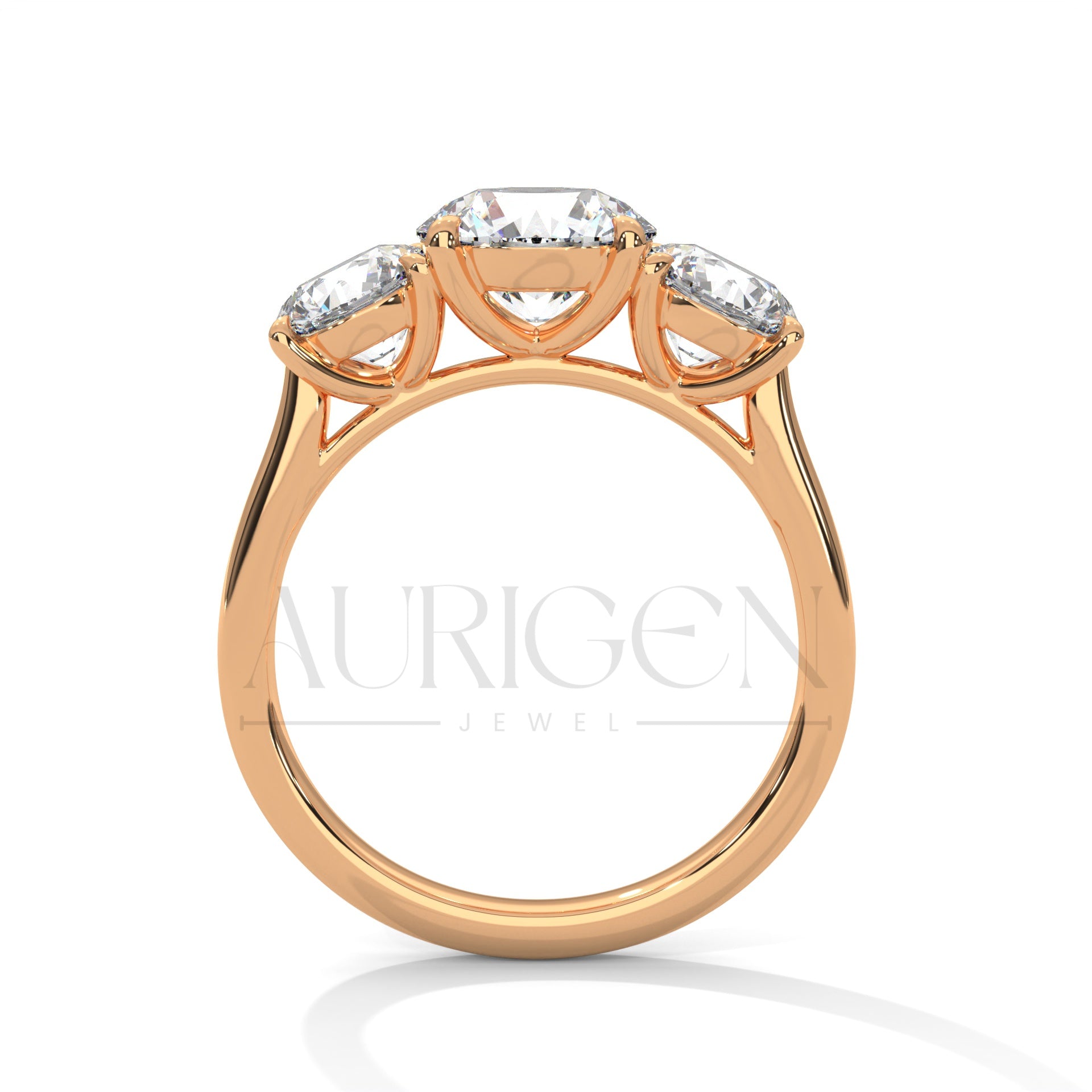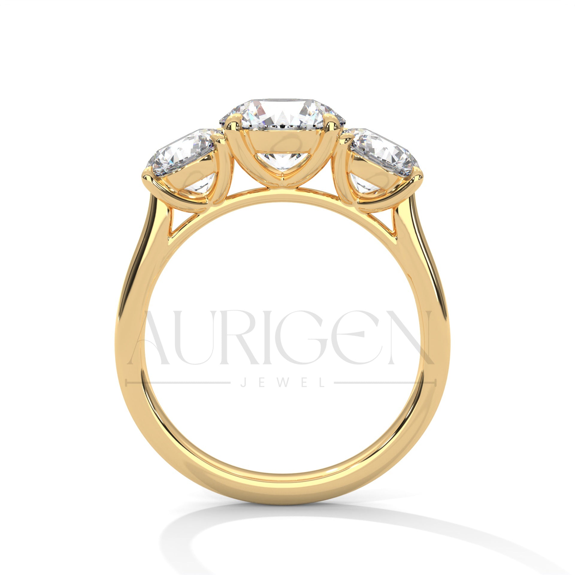 Timeless Trilogy Round Cut Diamond Engagement Ring in 14K Solid Gold