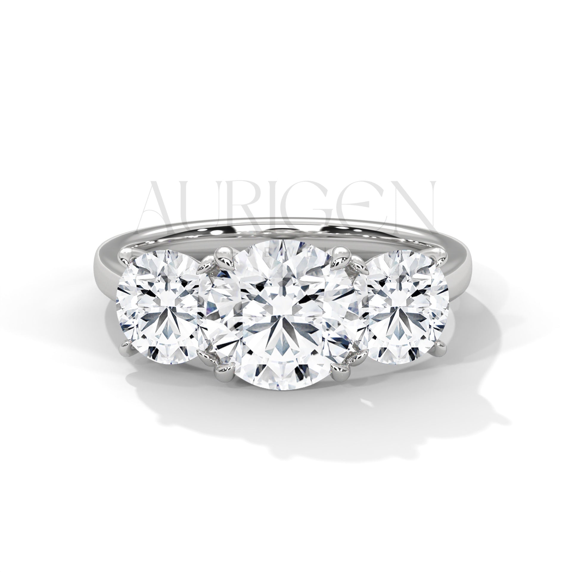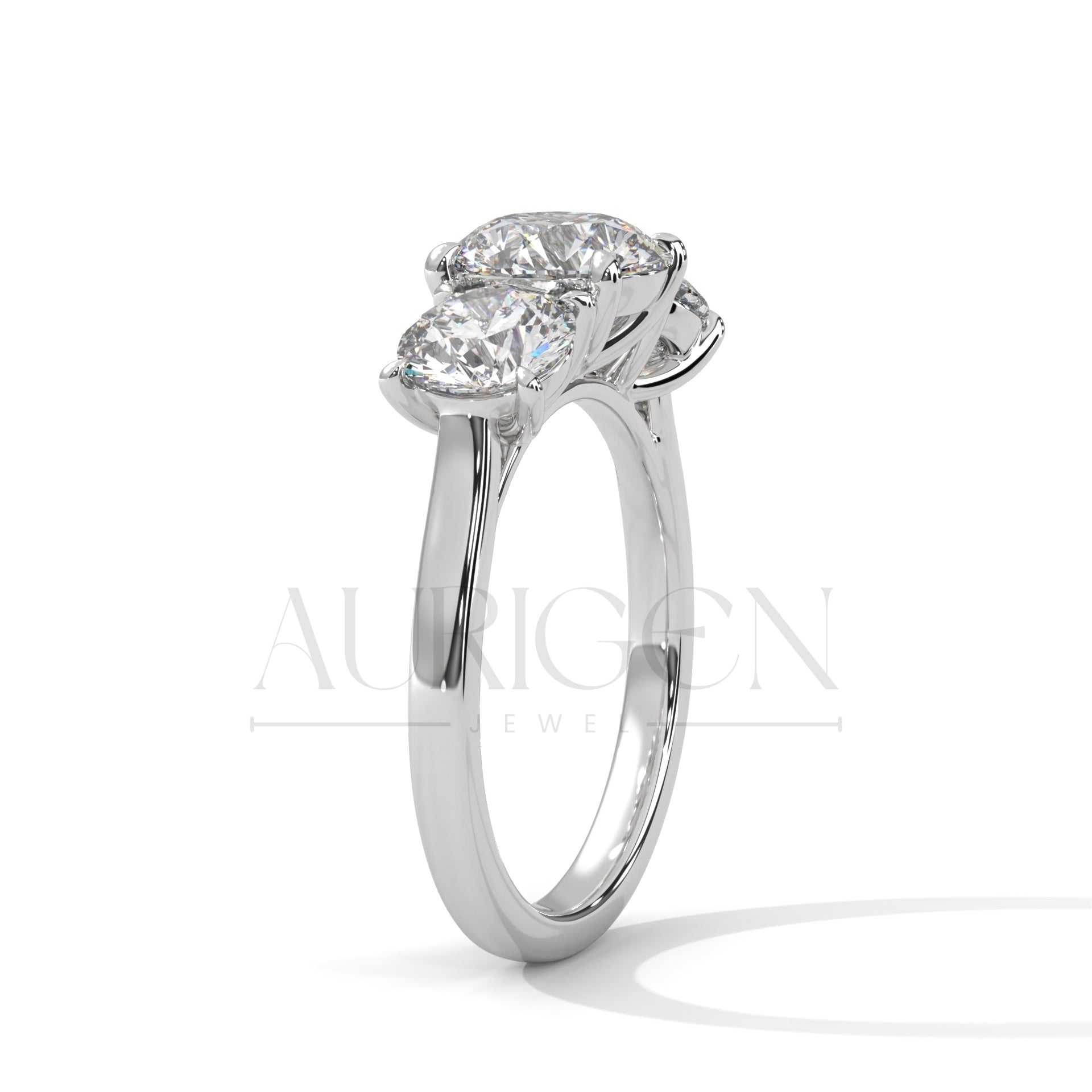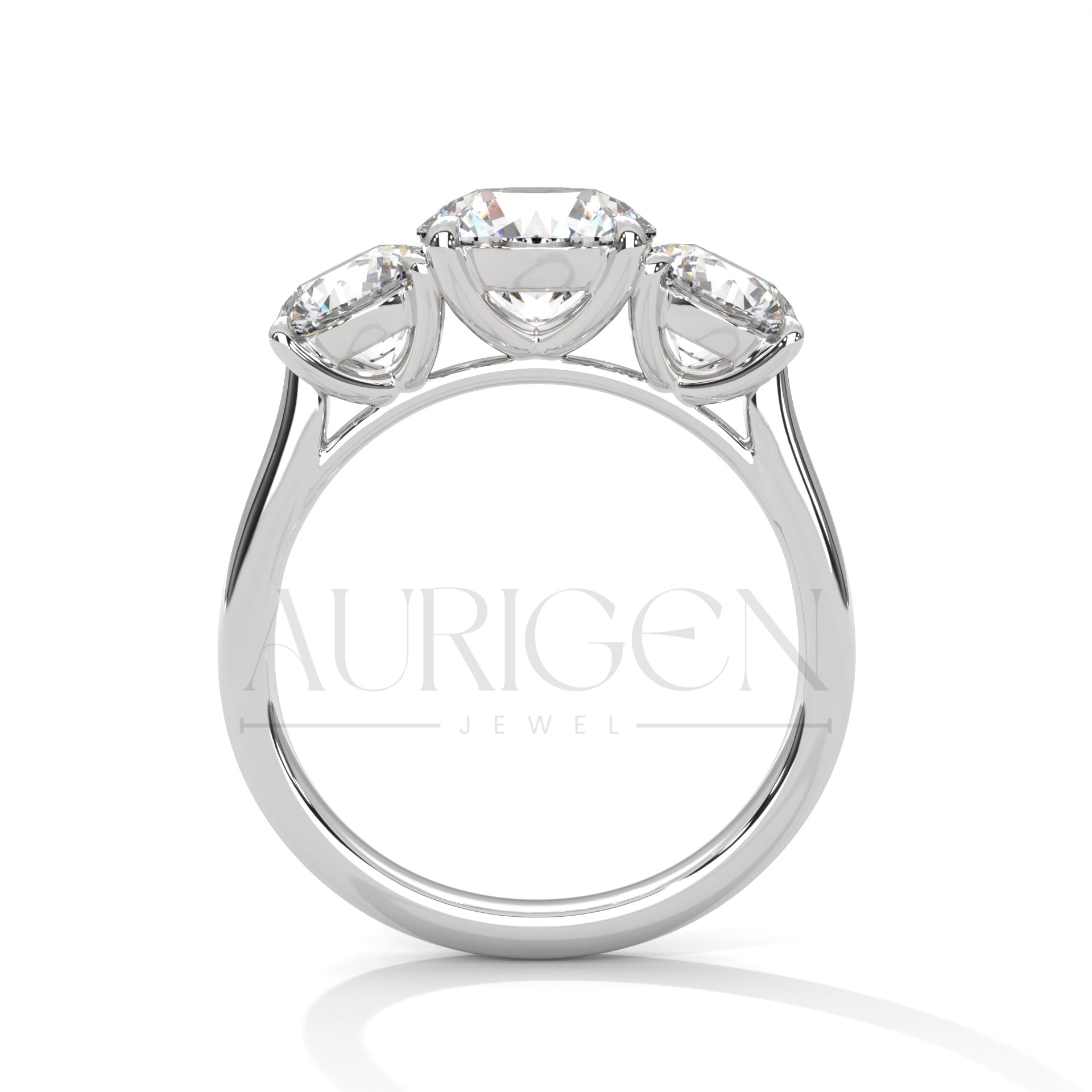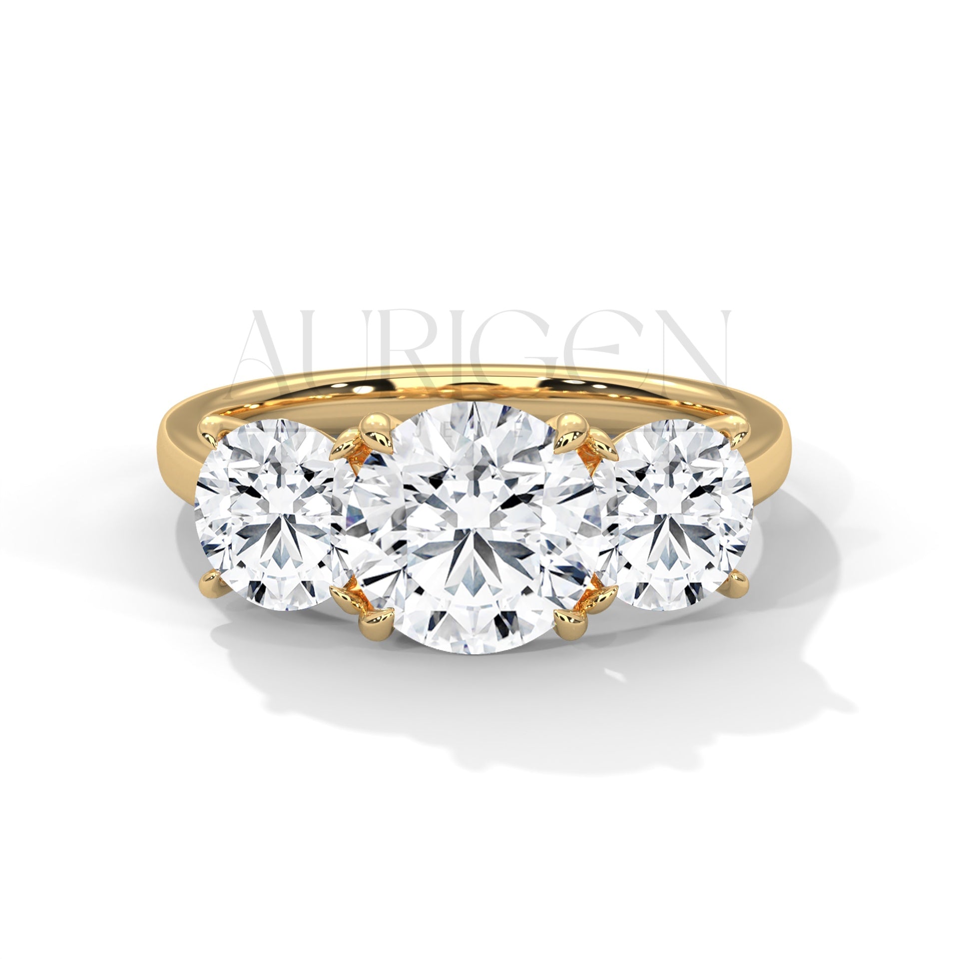 Timeless Trilogy Round Cut Diamond Engagement Ring in 14K Solid Gold