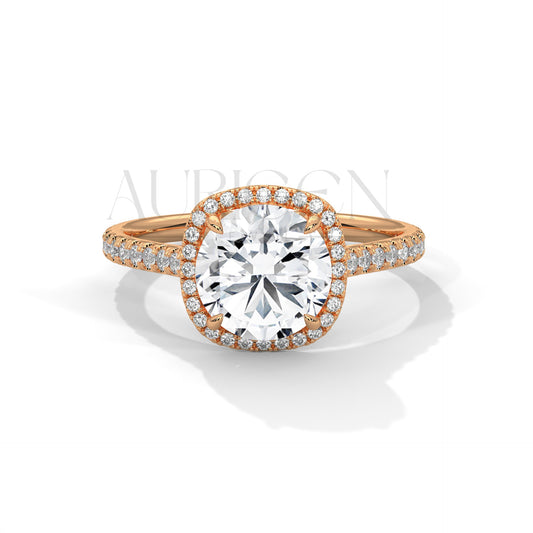 Round Brilliant Diamond Halo Engagement Ring in 14K Solid Gold with Pave Band