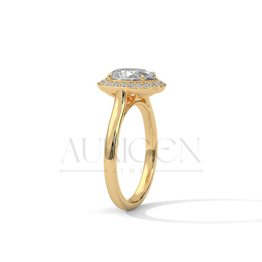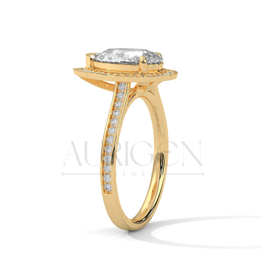 Pear-Shaped Halo Diamond Engagement Ring in 14K Solid Gold with Pave Band