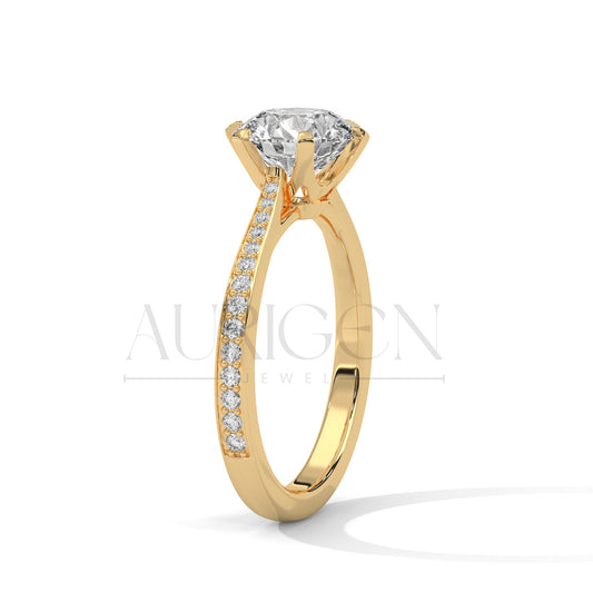 Round Brilliant Cut Solitaire Diamond Ring with Pave Band in 14K Solid Gold