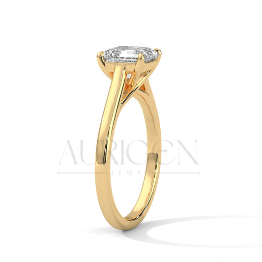 Asscher Cut Diamond Solitaire Ring in 14K Solid Gold Ring