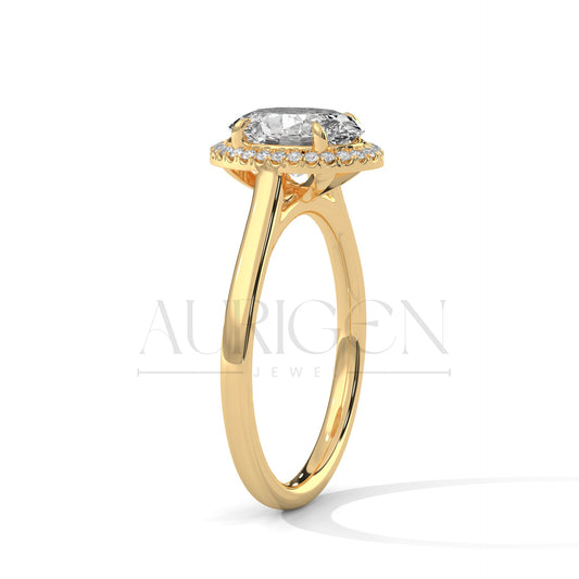 Classic Pear Shaped Halo Engagement Ring with Diamond Accents
