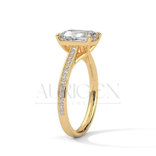 Emerald Cut Diamond Engagement Ring in 14K Solid Gold with Classic Pave Band