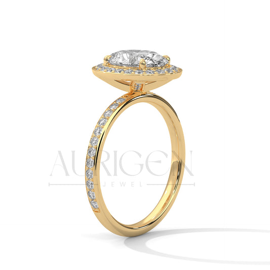 14K Solid Gold Round Brilliant Cut Diamond Ring with Halo and Pave Setting