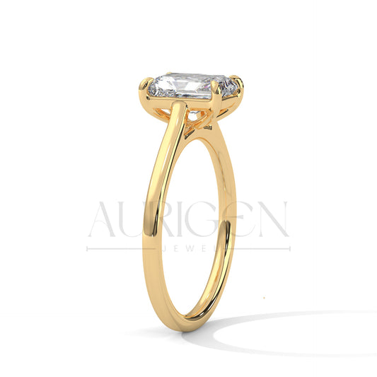 Emerald Cut Solitaire Diamond Engagement Ring in 14K Solid Gold