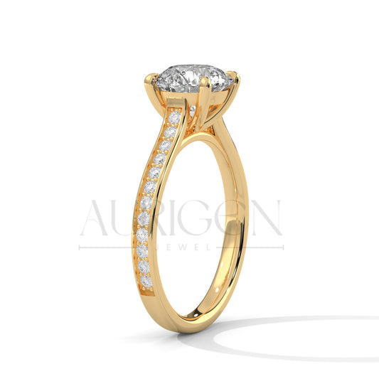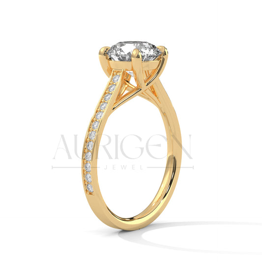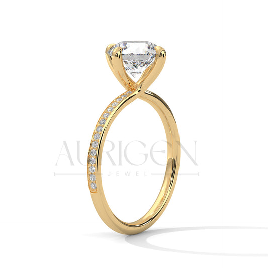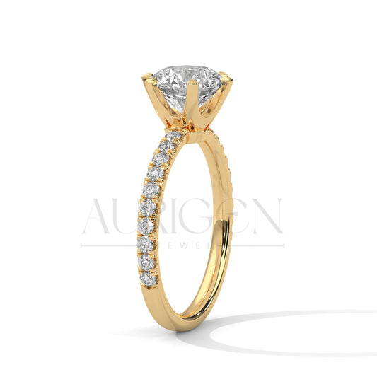 Classic 4 Prong Round Diamond Engagement Ring with Pave Band in 14K Solid Gold