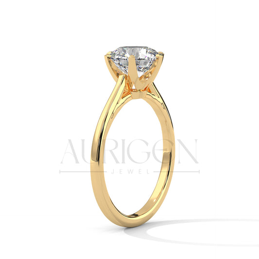 Elegant Round Brilliant Diamond Ring in 14K Solid Gold with Six Prong Setting