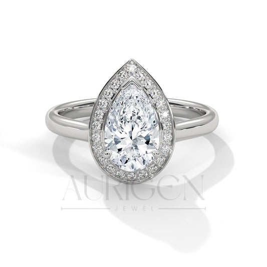Pear Shaped Diamond Halo Engagement Ring in 14K Solid Gold