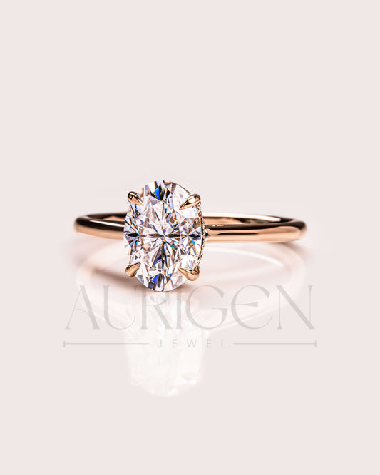 Classic Oval Cut Moissanite Ring Hidden Halo Setting with 14K Solid Gold Engagement Ring