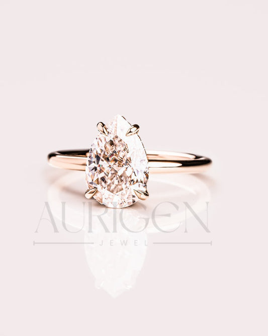 4-Prong Pear Moissanite Engagement Ring Hidden Halo 18K Rose Gold Wedding Ring