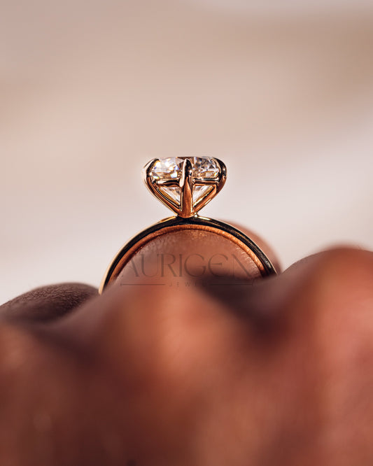 Round Cut Moissanite and Lab Grown Diamond Ring – Solitaire Setting in Solid Gold