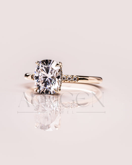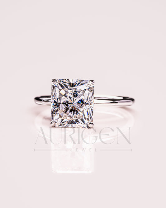 Radiant Cut Lab Grown and Moissanite Diamond Ring in 14K Solid Gold