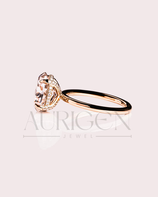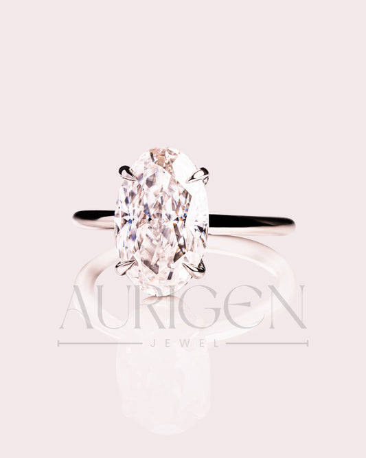 Oval Brilliant Cut Lab Grown and Moissanite Diamond Ring with 4-Prong Setting