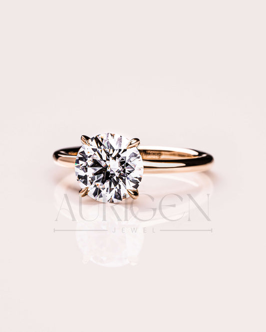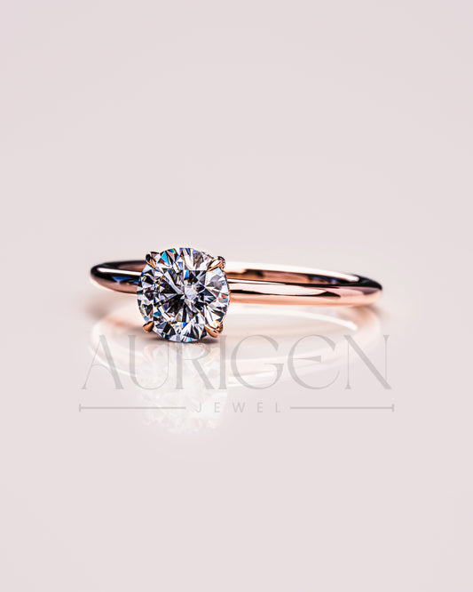 Round Moissanite and Leb Grown Solitaire Engagement Ring in 18k Rose Gold