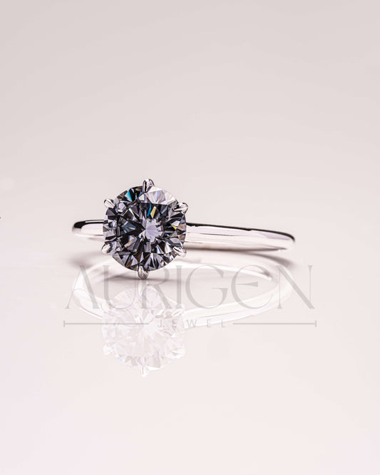 6-Prong Dark Grey Moissanite and Leb Grown Solitaire Engagement Ring