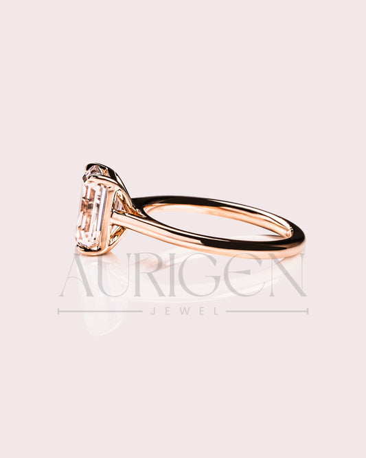 Moissanite and Lab Grown Diamond Emerald Cut Solitaire Engagement Ring in Solid Gold