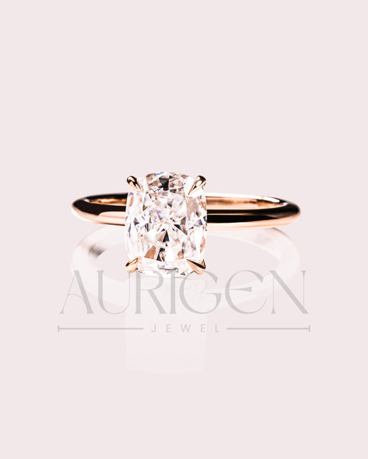 Elongated Cushion Cut Moissanite and Lab Grown Diamond Ring