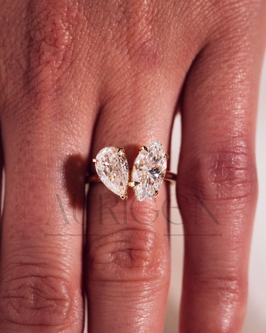 Marquise & Crushed Ice Pear Toi Et Moi Engagement Ring Two-Stone Ring 14K Solid Gold Ring