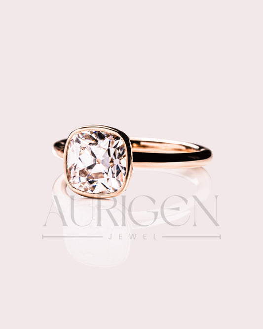 Elegant 2ct Cushion Cut Moissanite and Lab Grown Bezel Set Ring - 14K Solid Gold