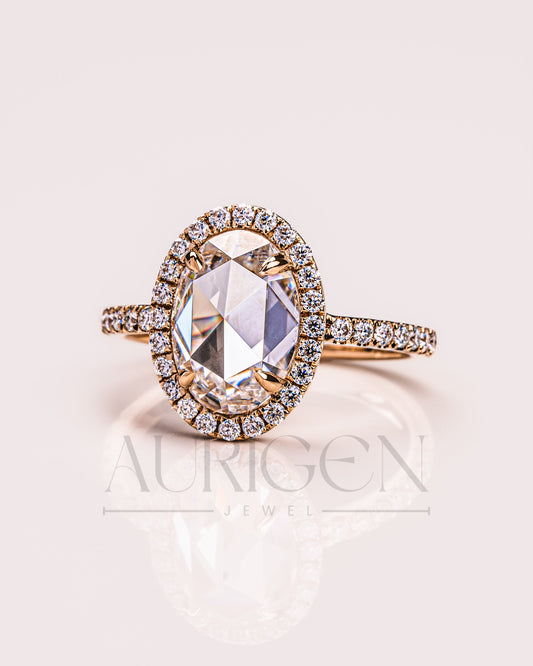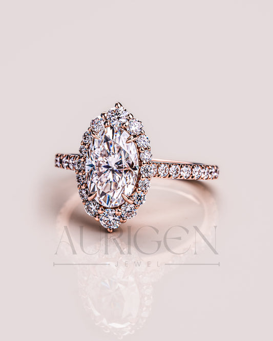 Glamorous Oval Cut Moissanite and Lab Grown Diamond Ring – Halo and Pave Setting