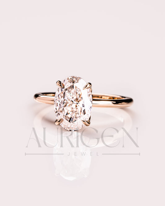 Oval Cut Solitaire Engagement Ring in Solid Gold - Lab Grown and Moissanite Diamond