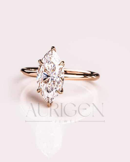 Modern Marquise Cut Engagement Ring- Lab Grown and Moissanite Diamond
