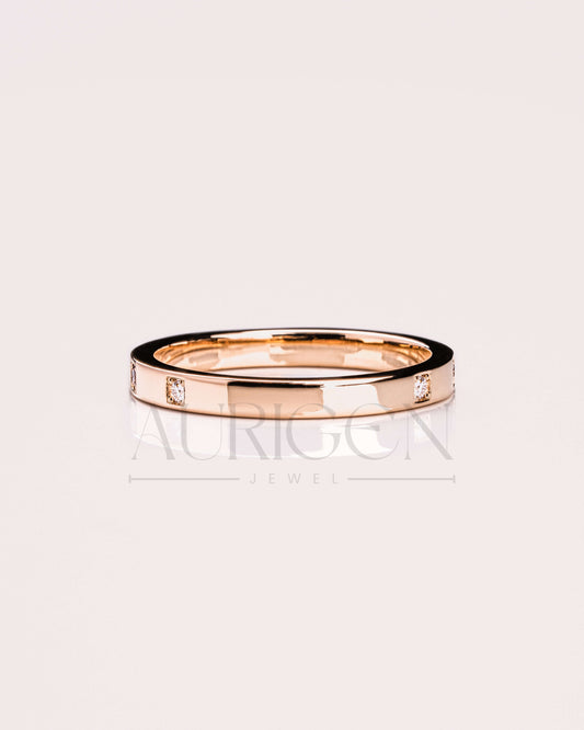 14k Rose Gold Round Moissanite & Leb Diamond Band for Women