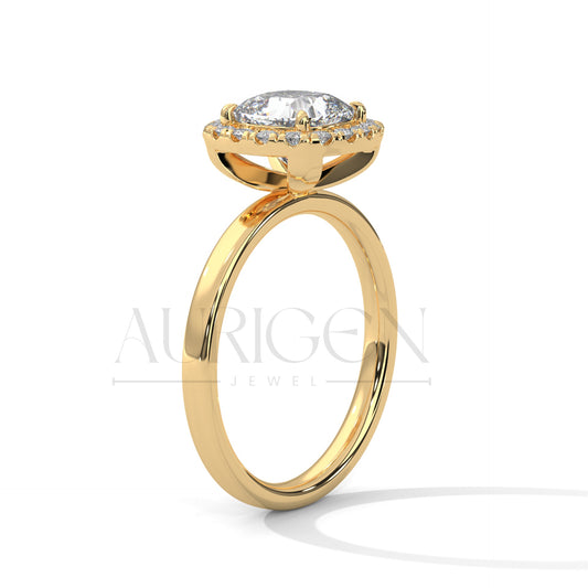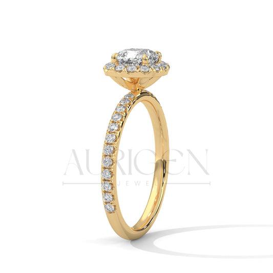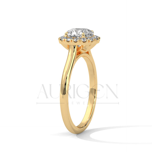 14K Solid Gold Cushion Halo Diamond Engagement Ring