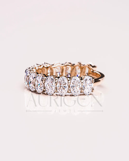 14K Solid Gold Crushed Ice Oval Moissanite & Leb Diamond Eternity Band