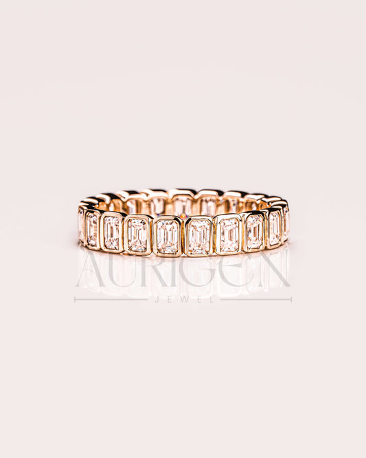 14K Solid Gold Emerald Cut Moissanite & Leb Full Eternity Unique Band