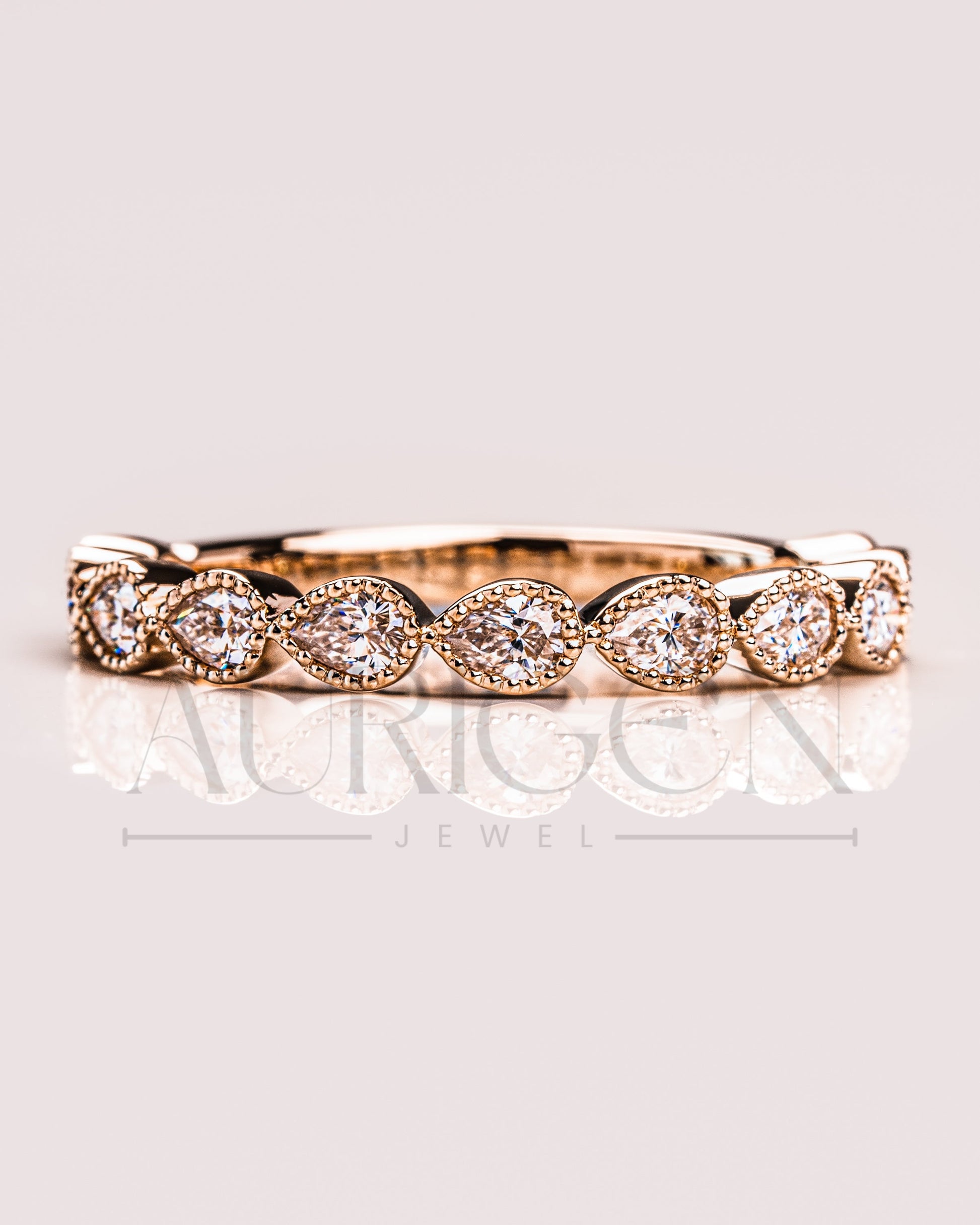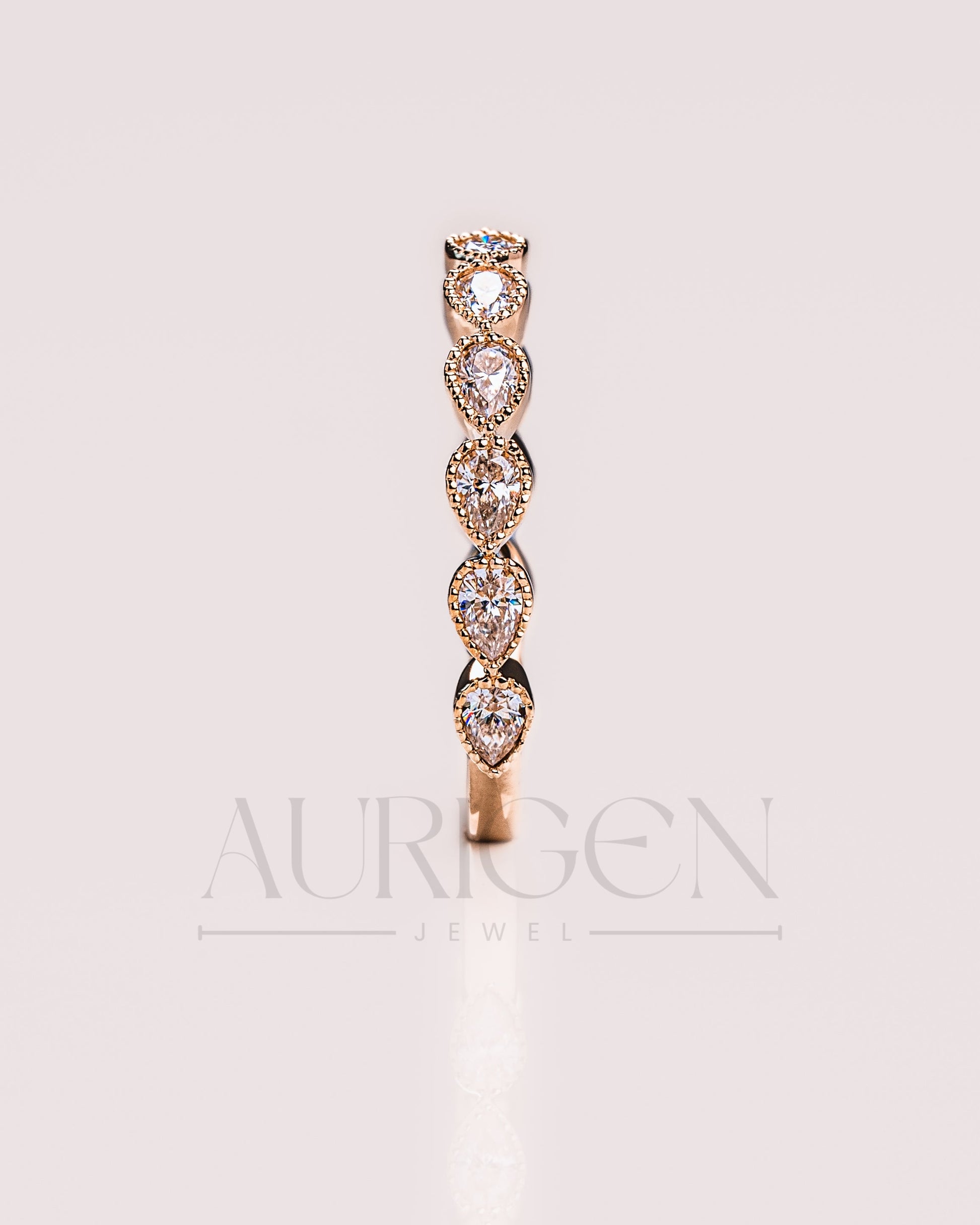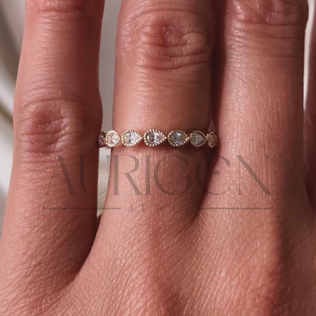 ¾ Eternity Milgrain Set East West Pear Moissanite and Leb Diamond Band