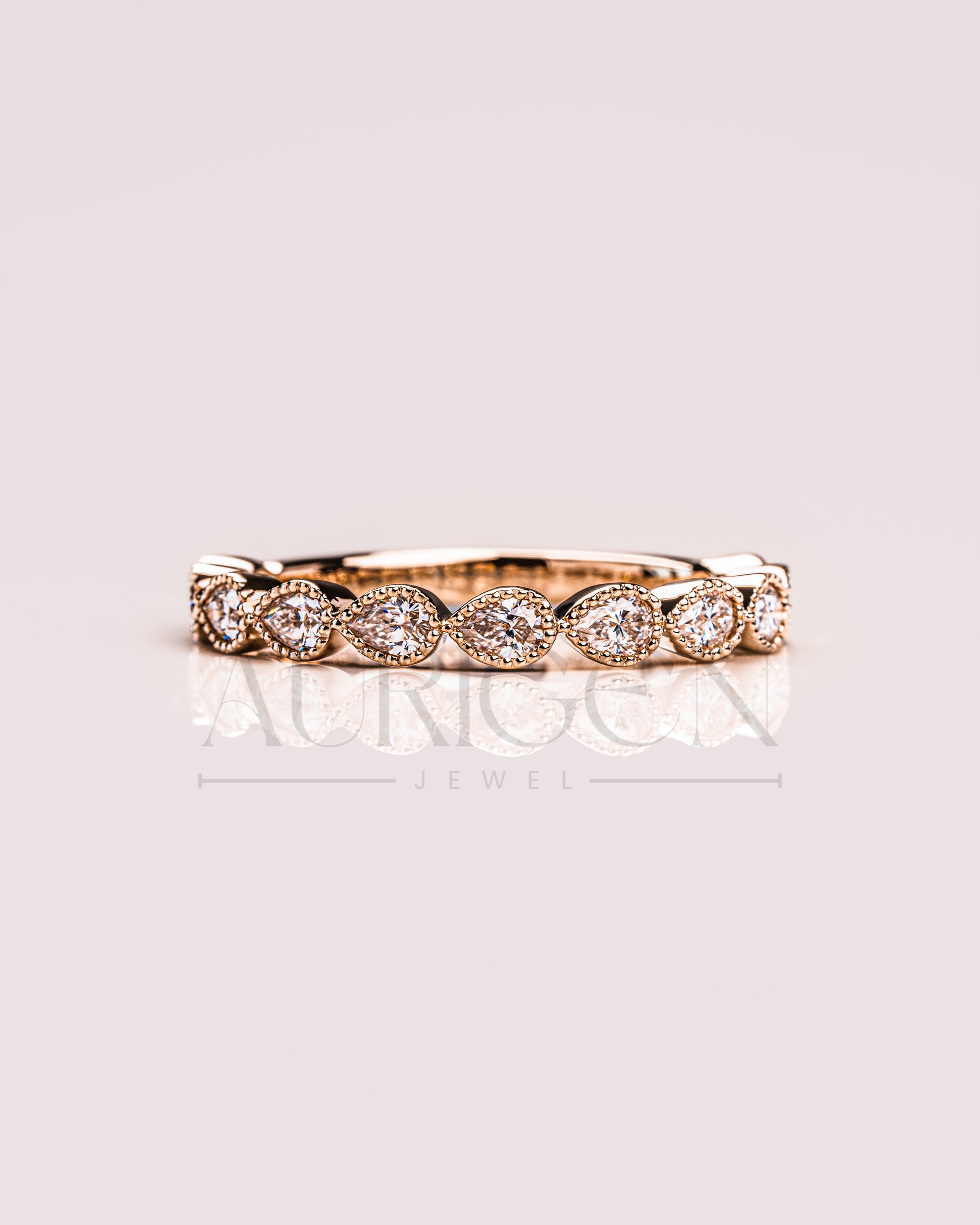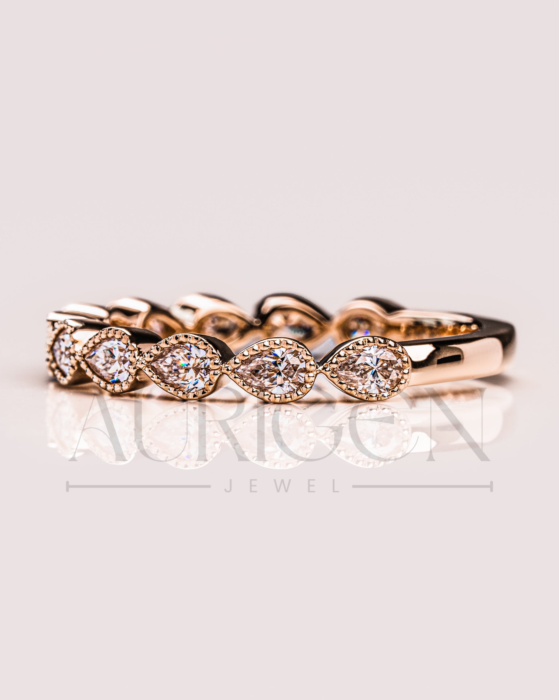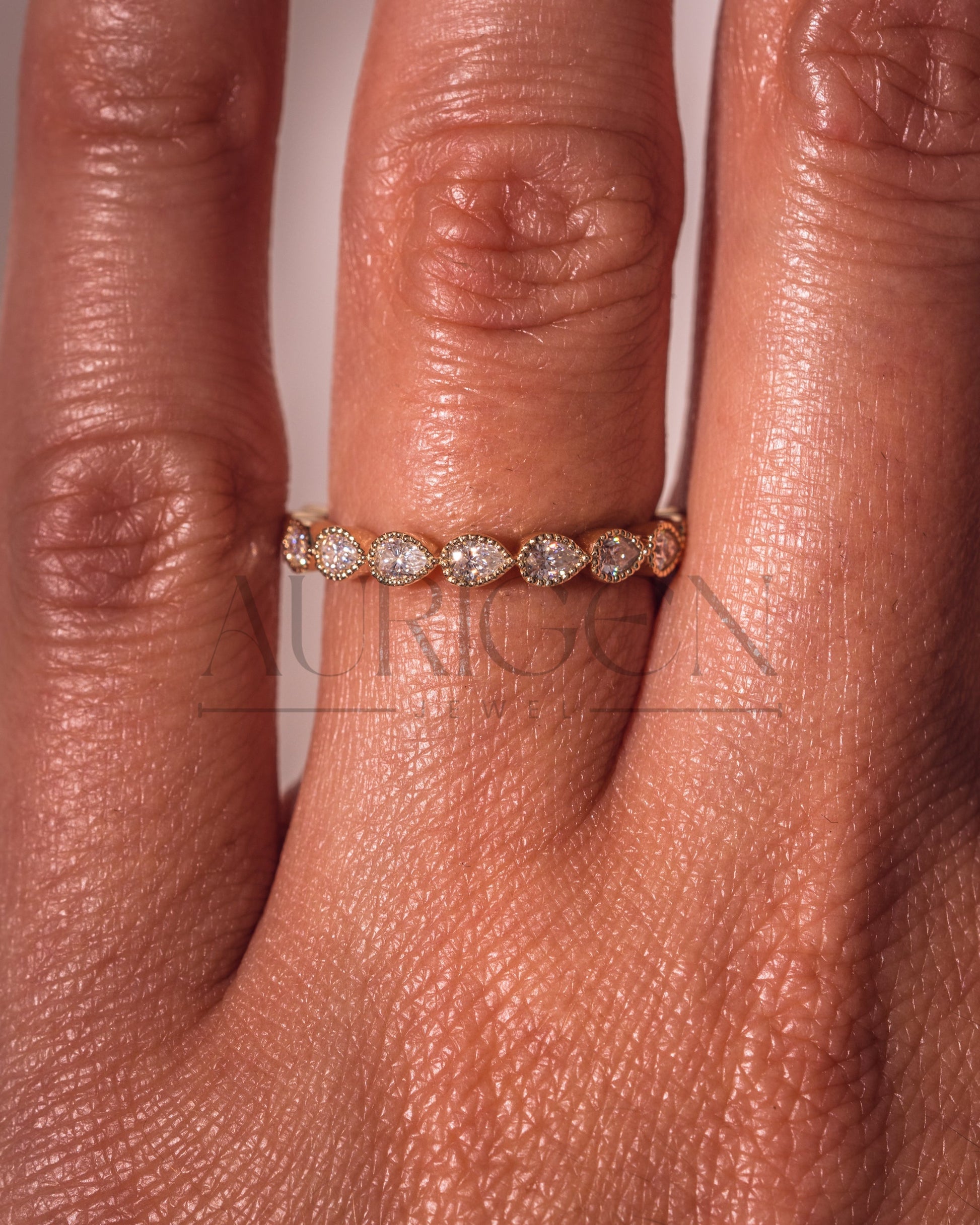 ¾ Eternity Milgrain Set East West Pear Moissanite and Leb Diamond Band
