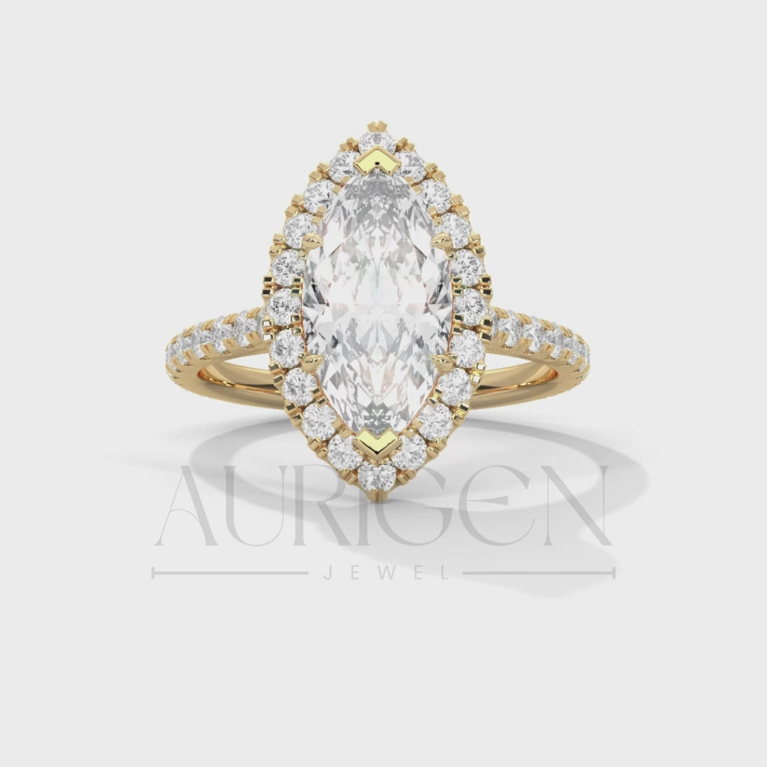 2 Ct Marquise Moissanite & Lab Diamond With Halo and Pave Setting Ring 14K Solid Gold