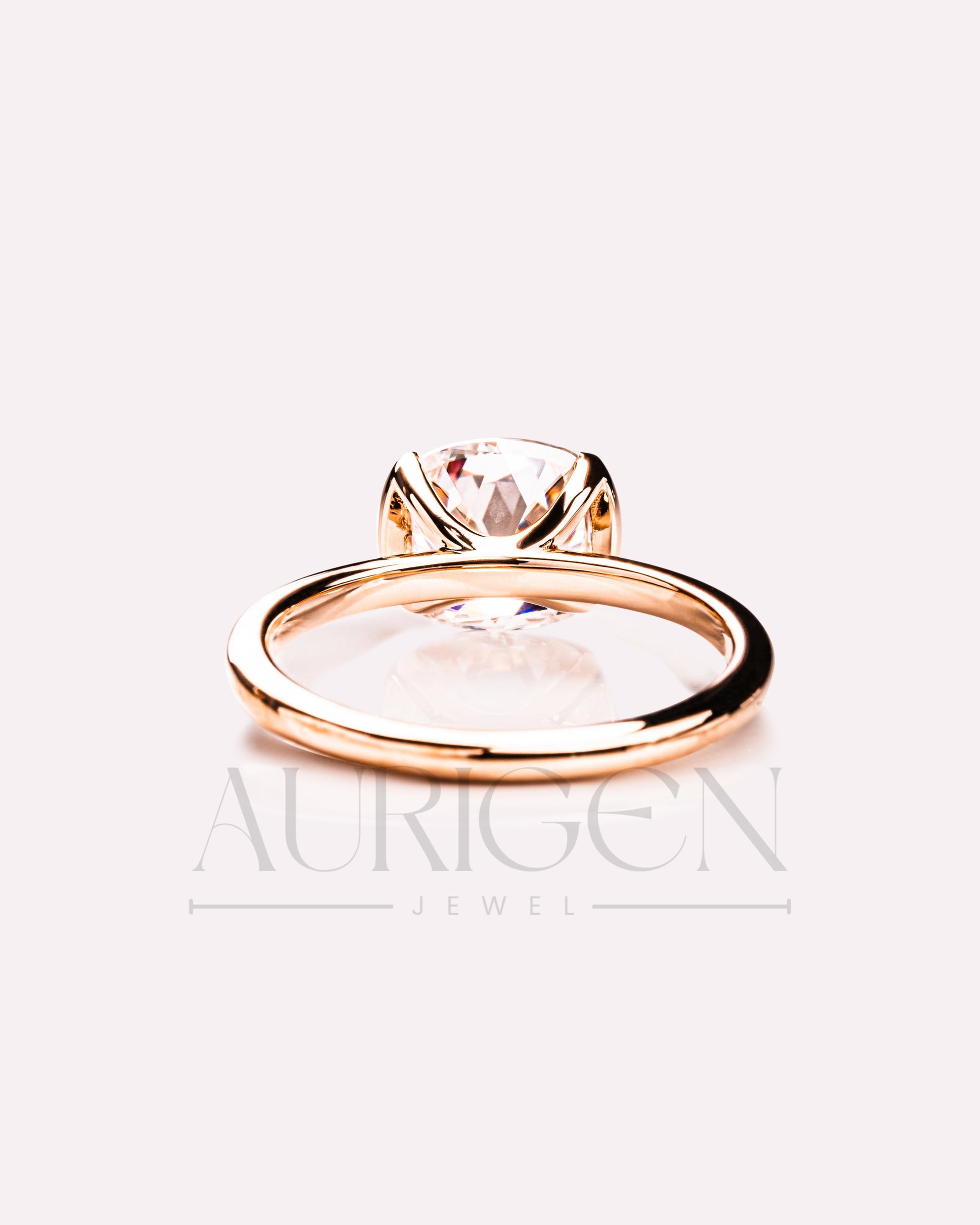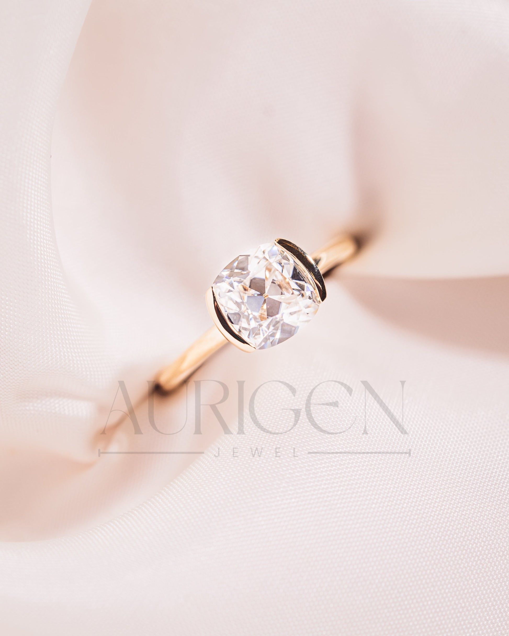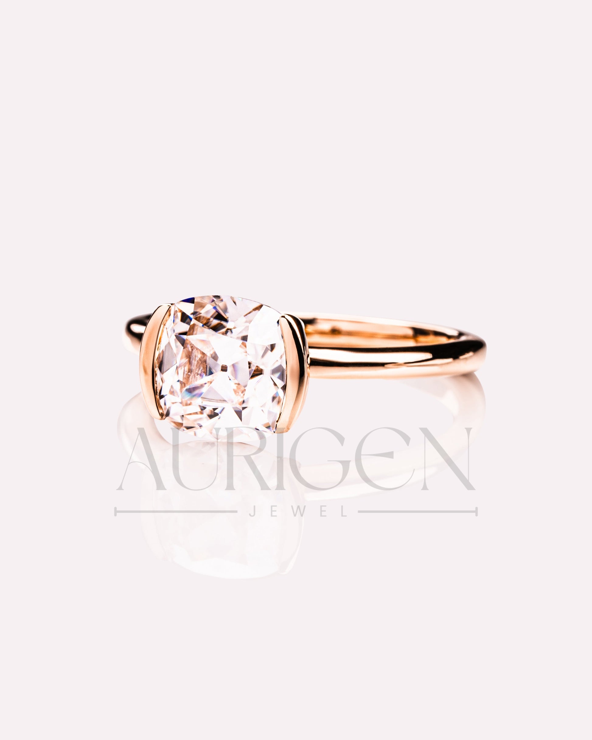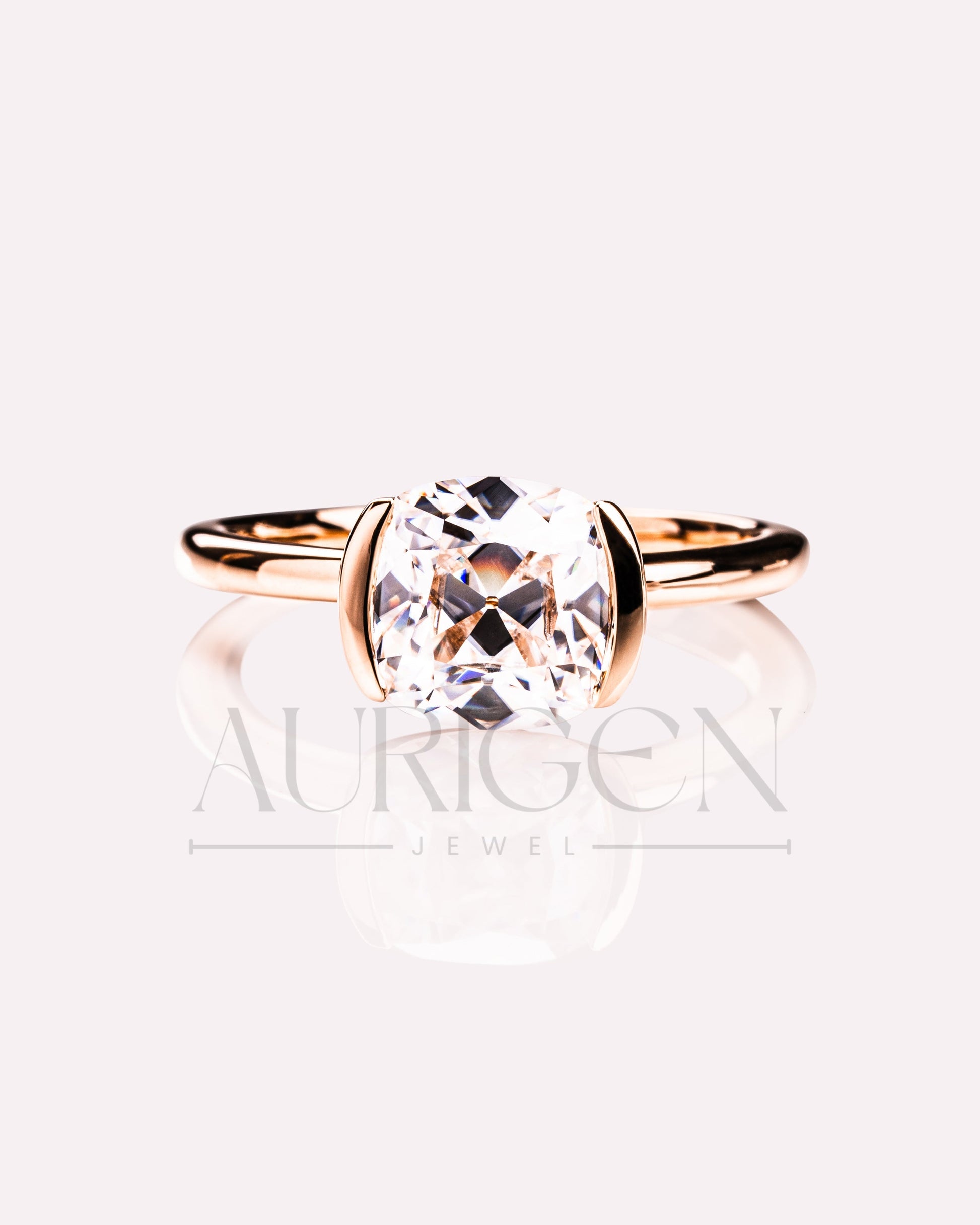 Attractive Cushion Cut Moissanite and Lab Grown Diamond Ring With Half Bezel Setting