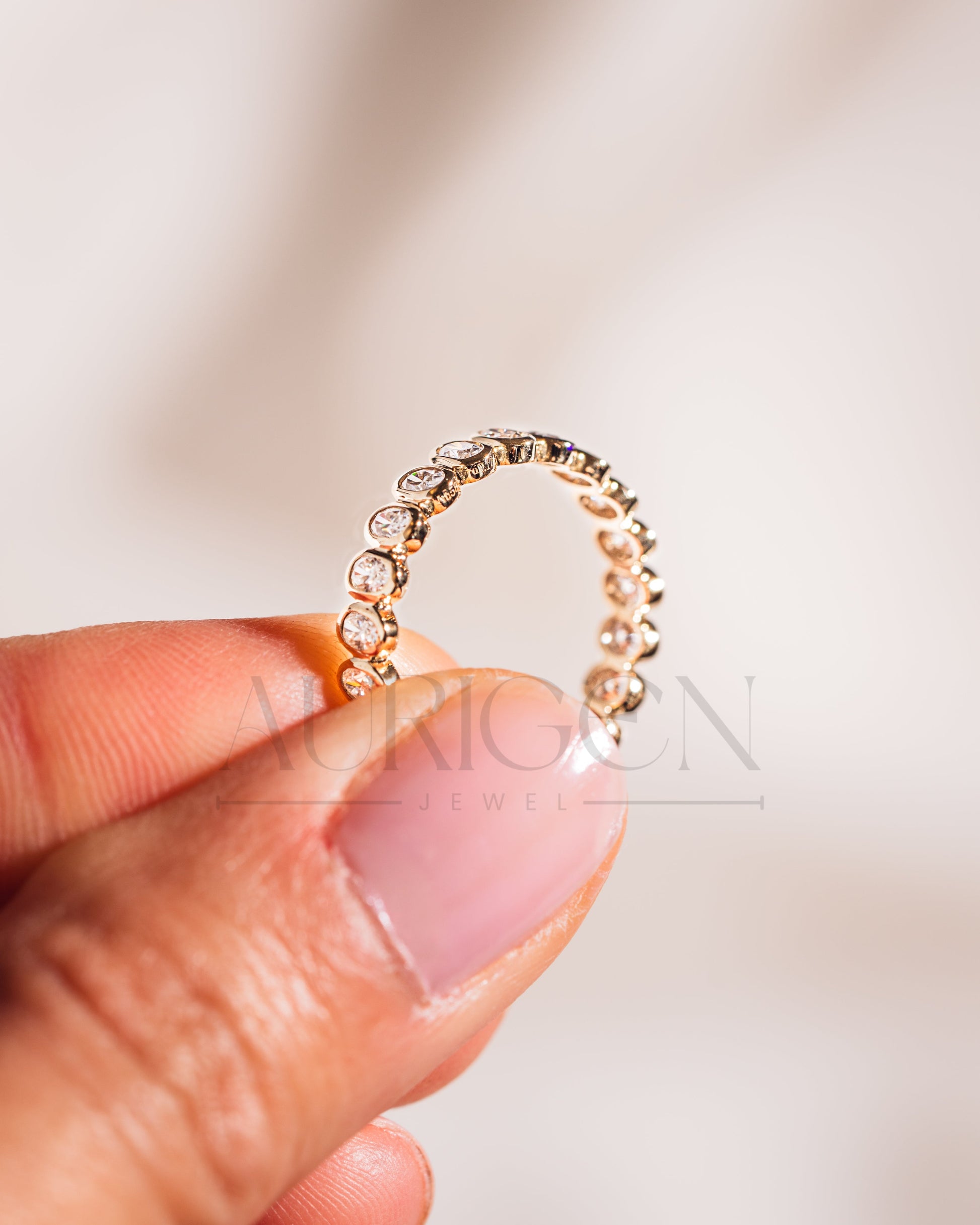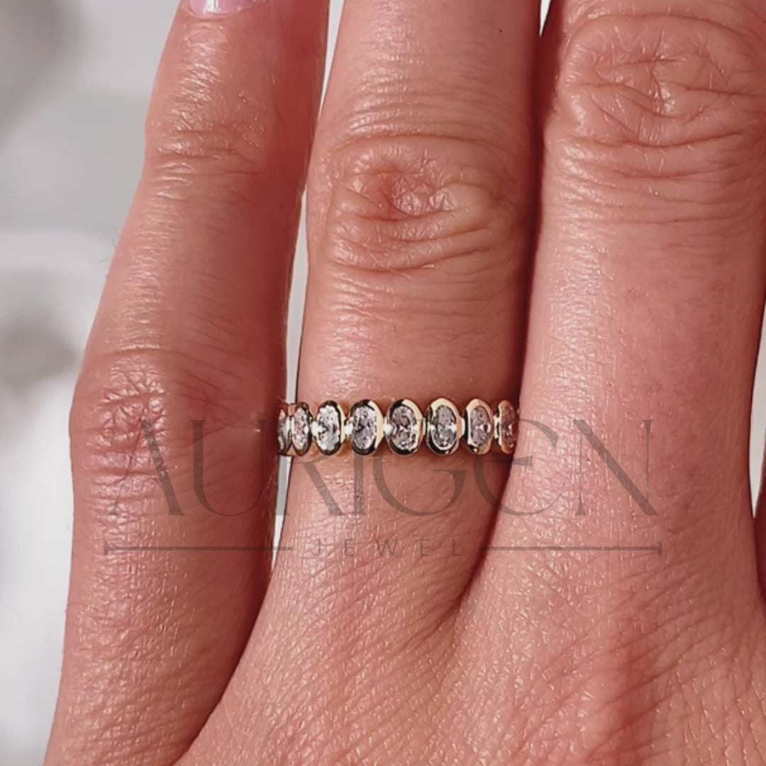 Brilliant Oval Cut Moissanite & Leb Diamond Bezel Set Eternity Band – 14K Solid Gold