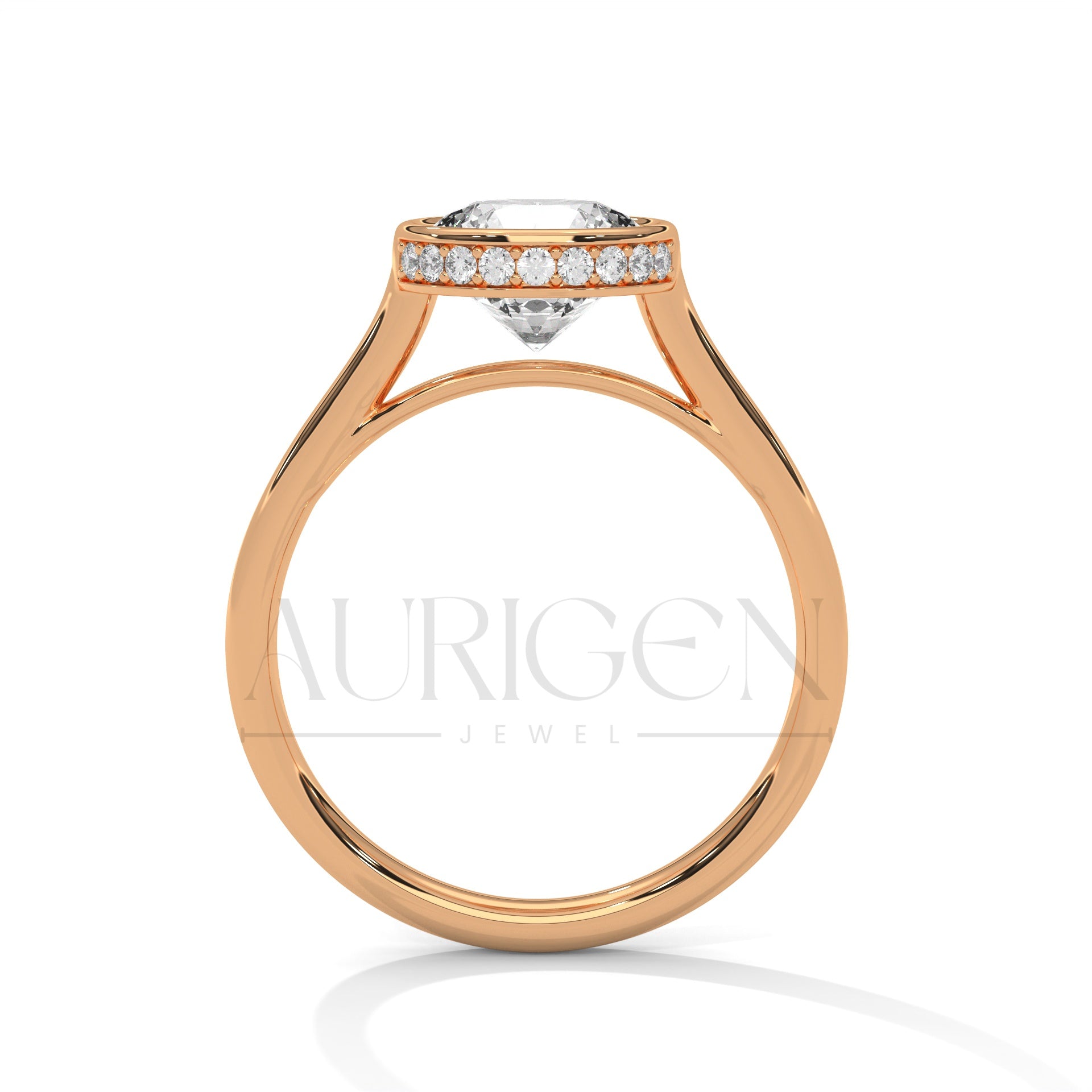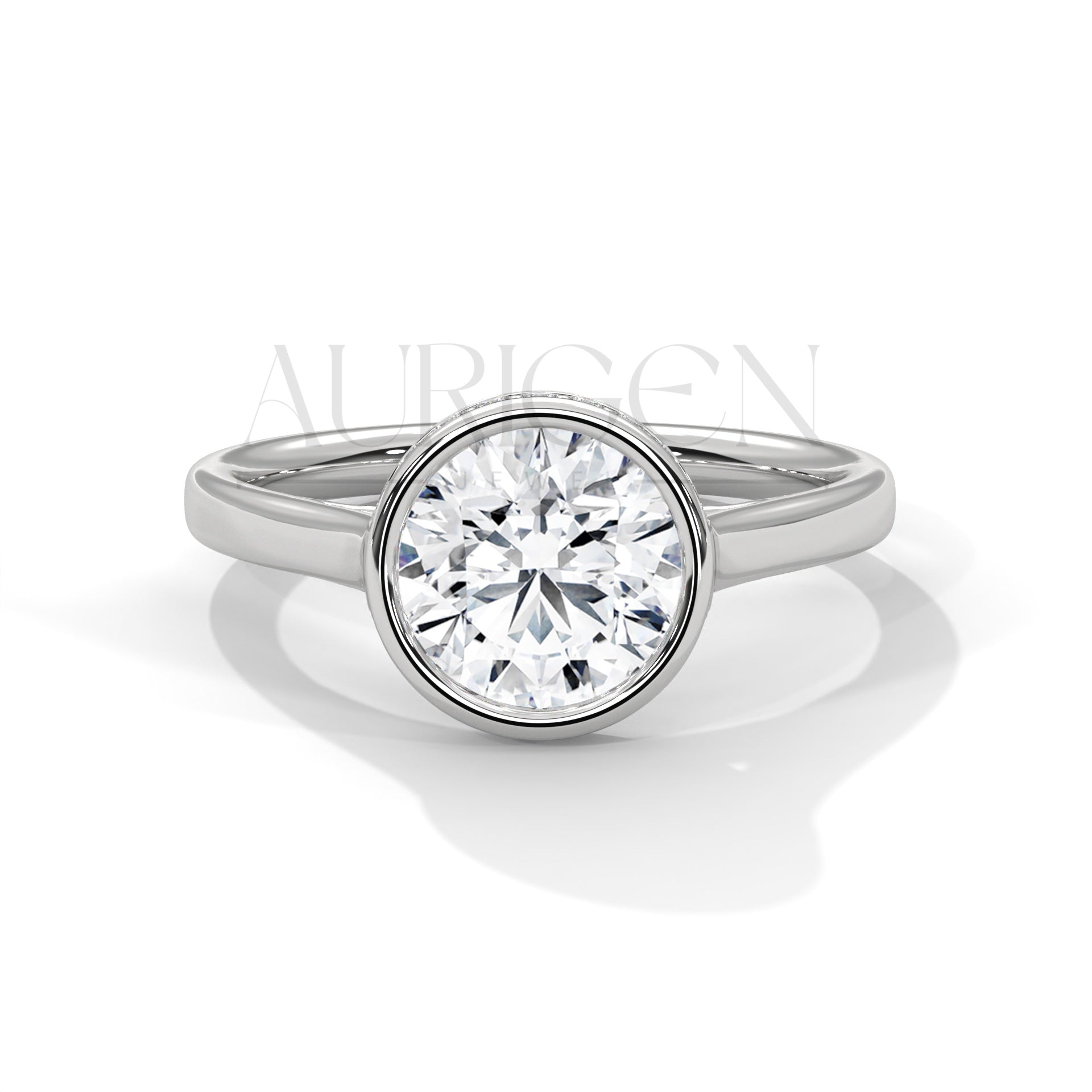 Brilliant Round Cut Moissnite & Lab Diamond Bezel Set 14K Solid Gold Ring
