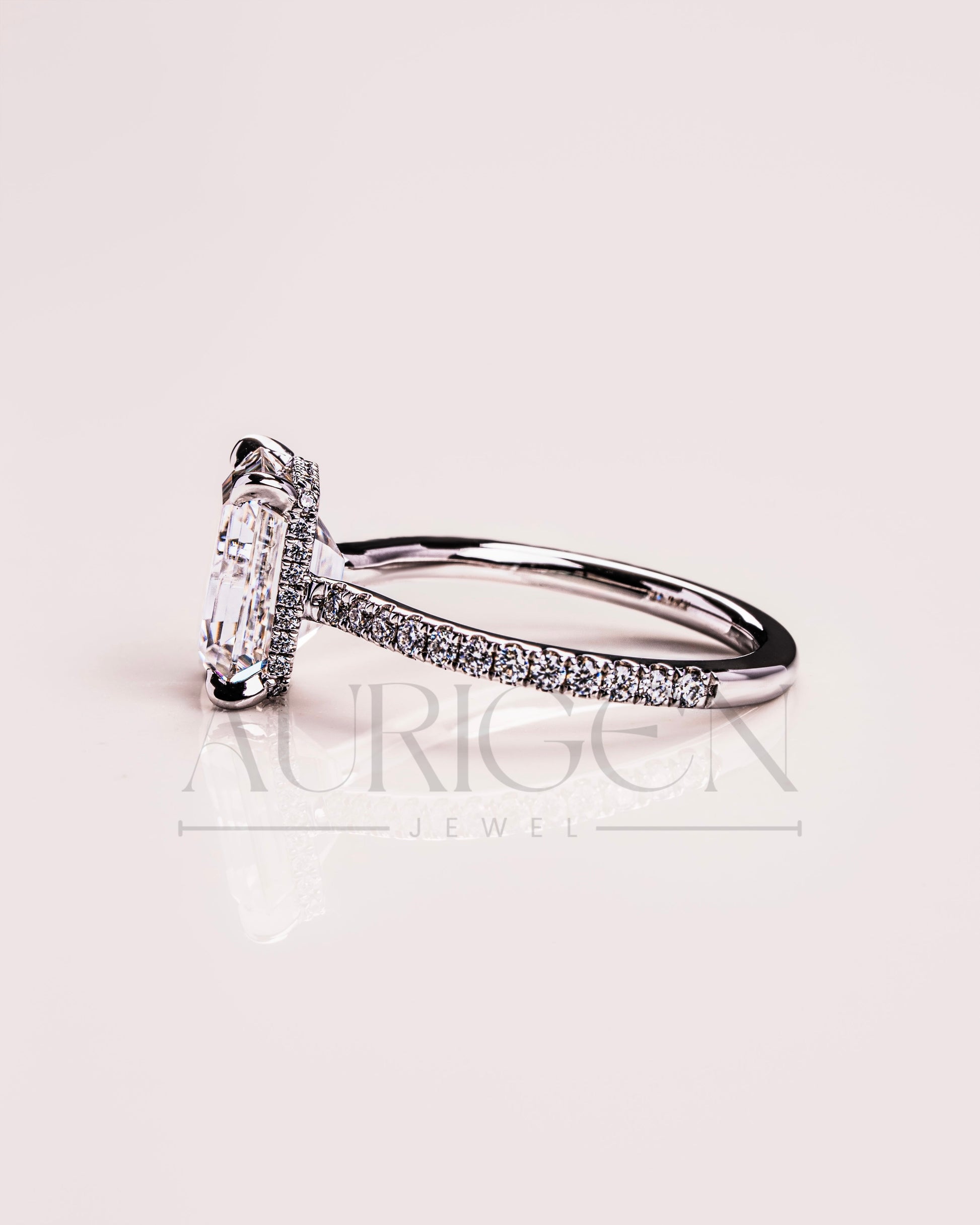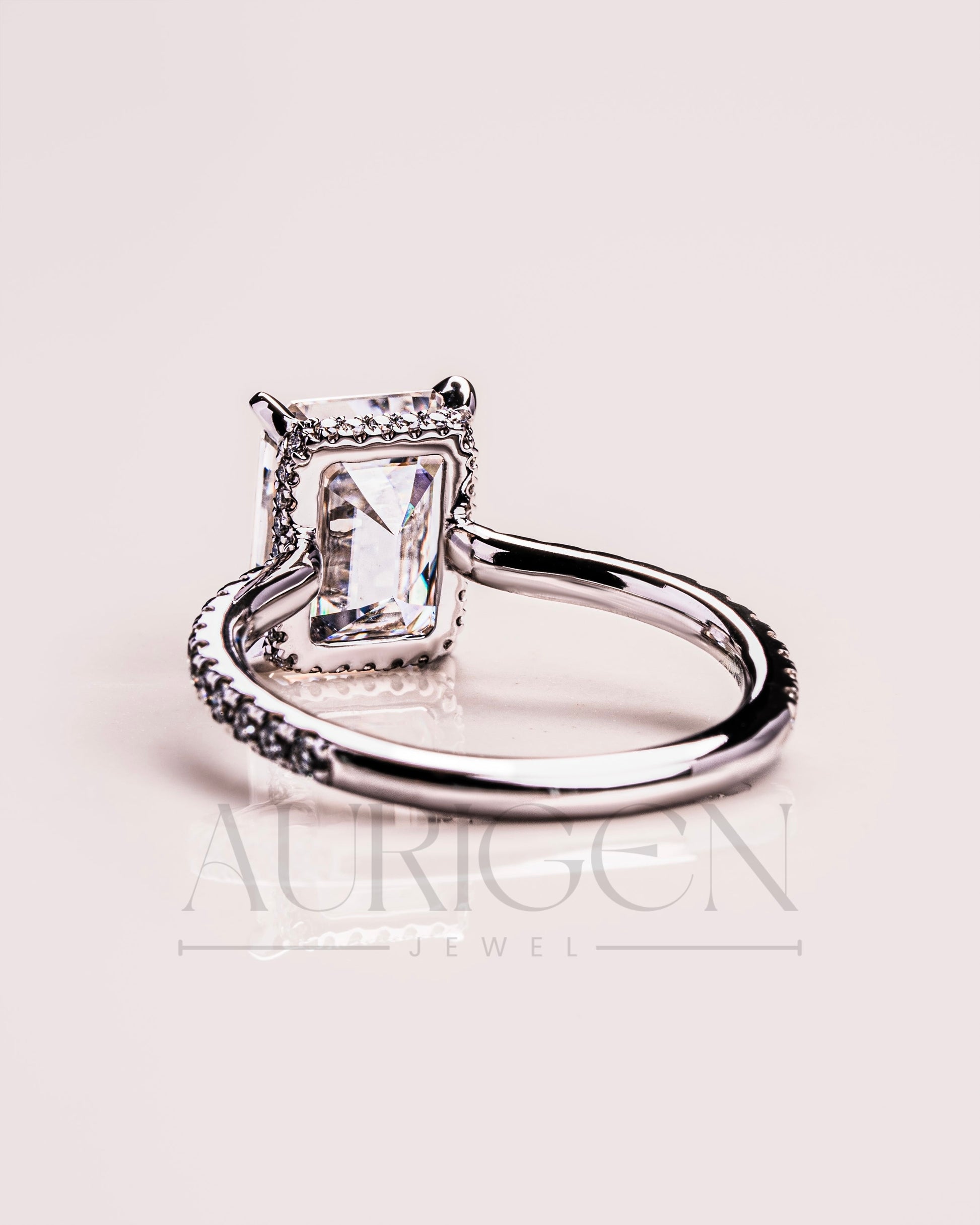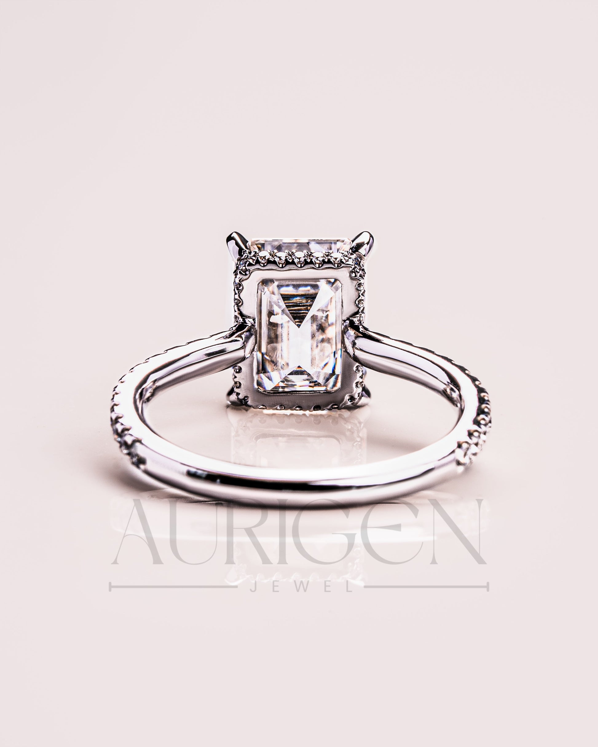 Emerald Cut Moissanite and Lab Grown Diamond Ring with Pave in 14K Solid Gold