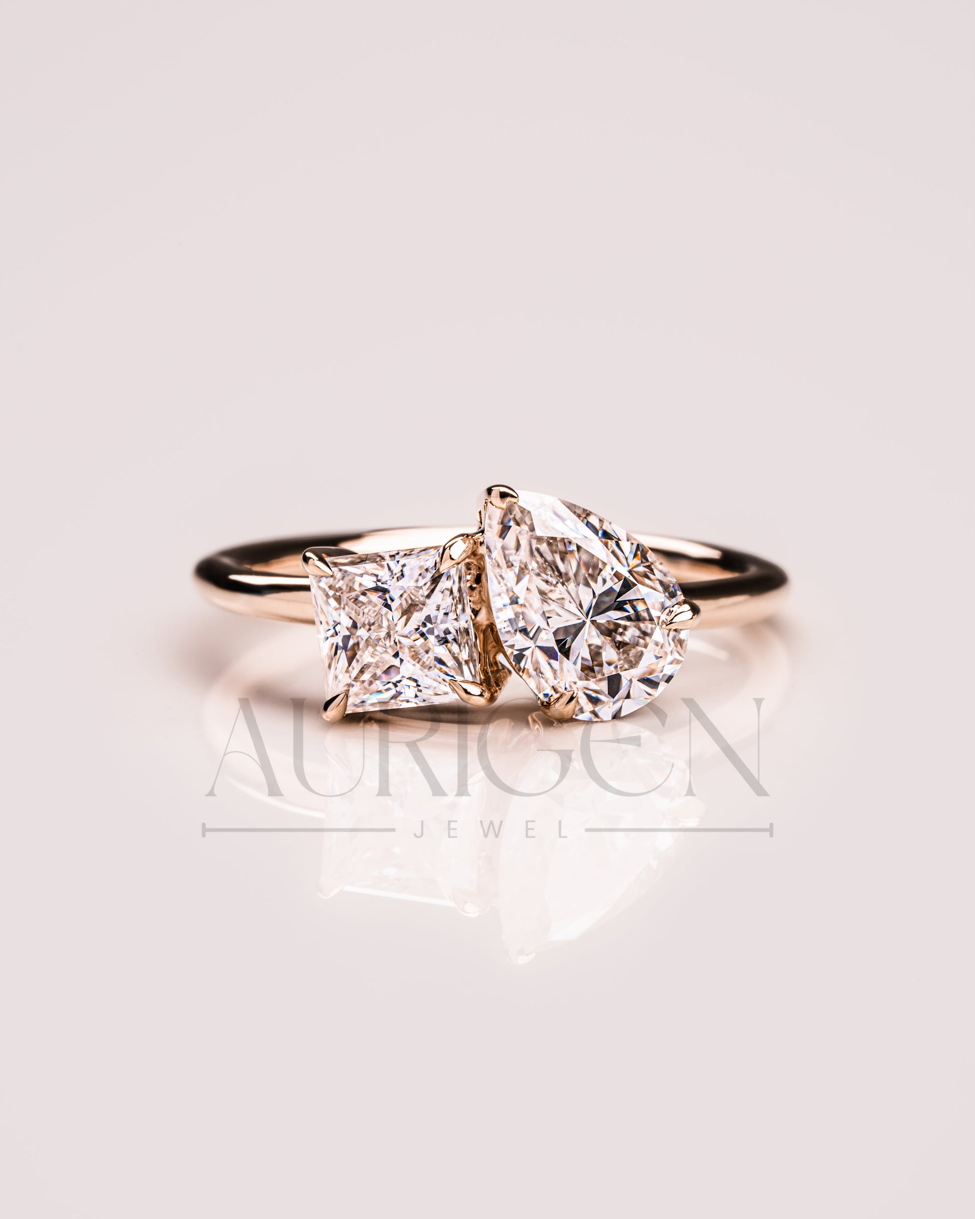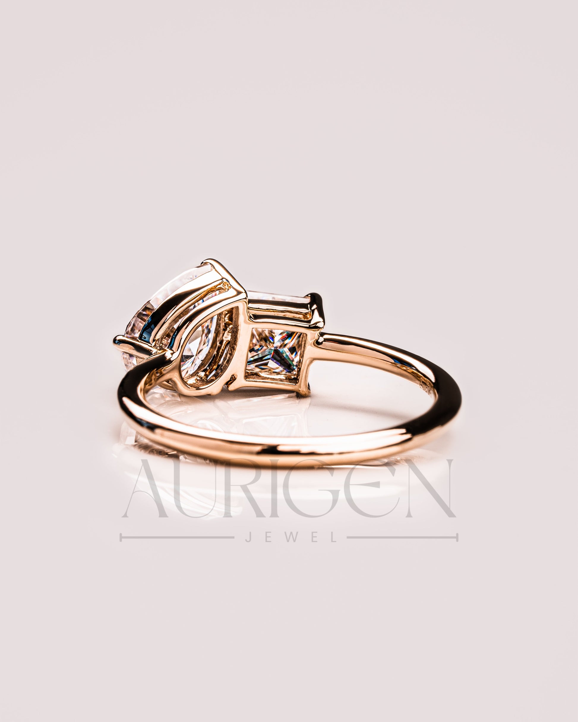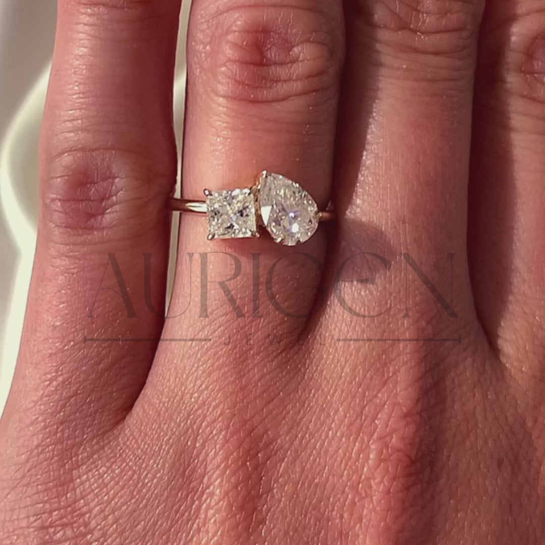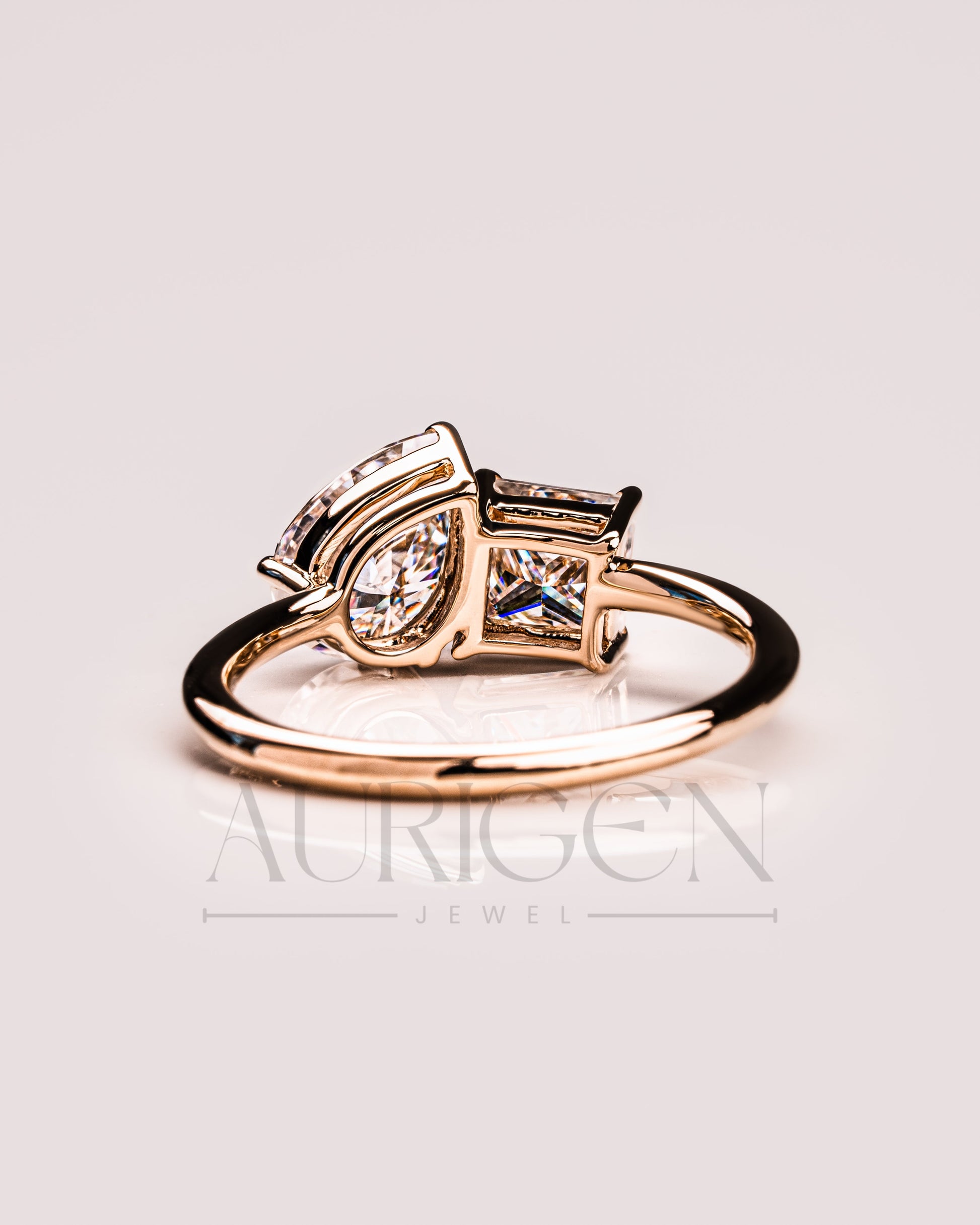 Toi Et Moi Princess and Pear Cut Moissanite & Lab Grown Diamond Engagement Ring